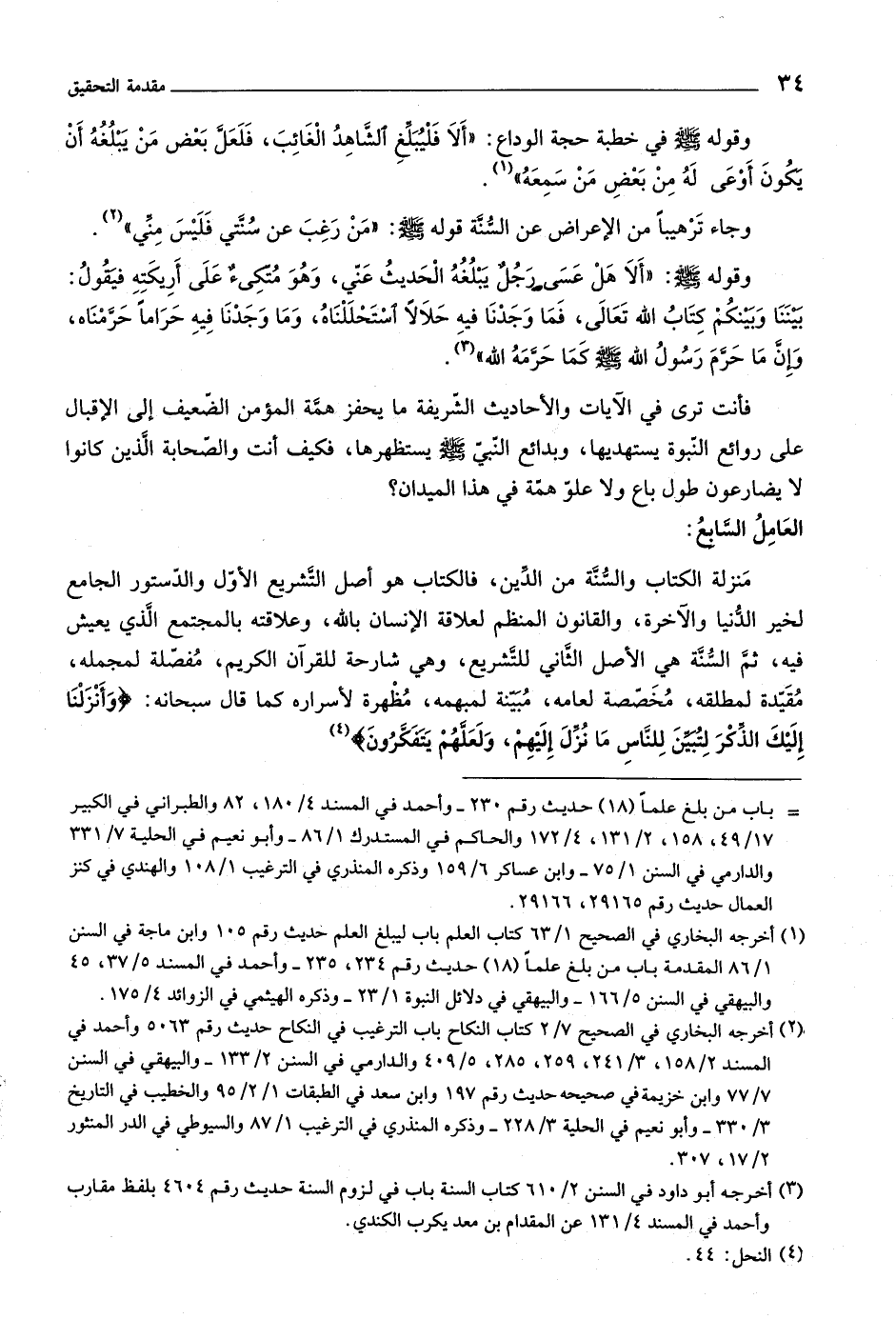 [ (١) ] أخرجه البخاري في الصحيح ١/ ٦٣ كتاب العلم باب ليبلغ العلم حديث رقم ١٠٥ وابن ماجة في السنن ١/ ٨٦ المقدمة باب من بلغ علما (١٨) حديث رقم ٢٣٤، ٢٣٥- وأحمد في المسند ٥/ ٣٧، ٤٥ والبيهقي في السنن ٥/ ١٦٦- والبيهقي في دلائل النبوة ١/ ٢٣- وذكره الهيثمي في الزوائد ٤/ ١٧٥.