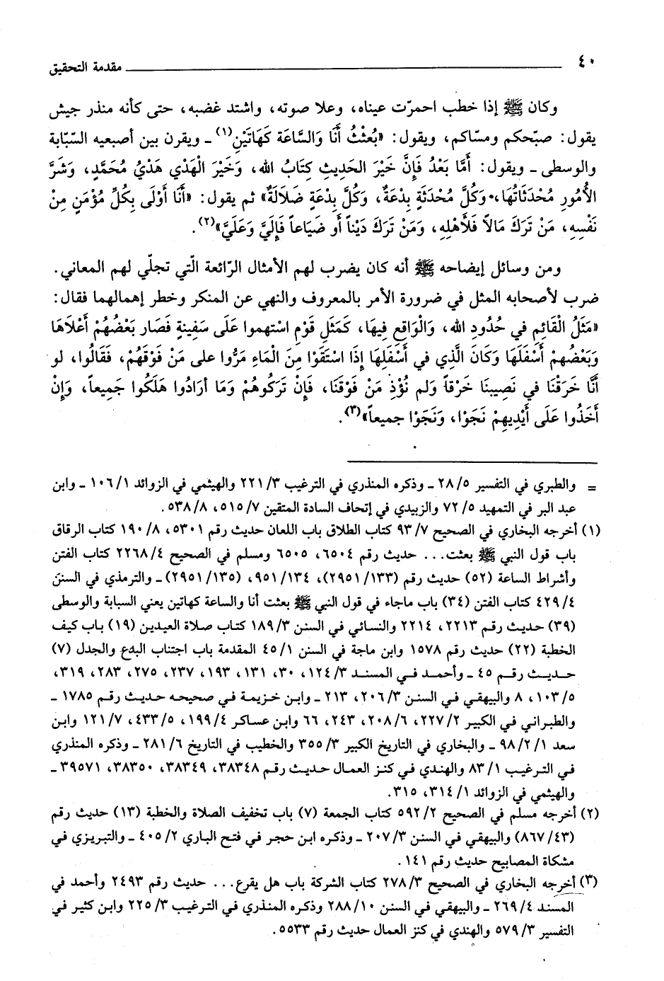 (٣٩) حديث رقم ٢٢١٣، ٢٢١٤ والنسائي في السنن ٣/ ١٨٩ كتاب صلاة العيدين (١٩) باب كيف الخطبة (٢٢) حديث رقم ١٥٧٨ وابن ماجة في السنن ١/ ٤٥ المقدمة باب اجتناب البدع والجدل (٧) حديث رقم ٤٥- وأحمد في المسند ٣/ ١٢٤، ٣٠، ١٣١، ١٩٣، ٢٣٧، ٢٧٥، ٢٨٣، ٣١٩، ٥/ ١٠٣، ٨ والبيهقي في السنن ٣/ ٢٠٦، ٢١٣- وابن خزيمة في صحيحه حديث رقم ١٧٨٥- والطبراني في الكبير ٢/ ٢٢٧، ٦/ ٢٠٨، ٢٤٣، ٦٦ وابن عساكر ٤/ ١٩٩، ٥/ ٤٣٣، ٧/ ١٢١ وابن سعد ١/ ٢/ ٩٨- والبخاري في التاريخ الكبير ٣/ ٣٥٥ والخطيب في التاريخ ٦/ ٢٨١- وذكره المنذري في الترغيب ١/ ٨٣ والهندي في كنز العمال حديث رقم ٣٨٣٤٨، ٣٨٣٤٩، ٣٨٣٥٠، ٣٩٥٧١- والهيثمي في الزوائد ١/ ٣١٤، ٣١٥.