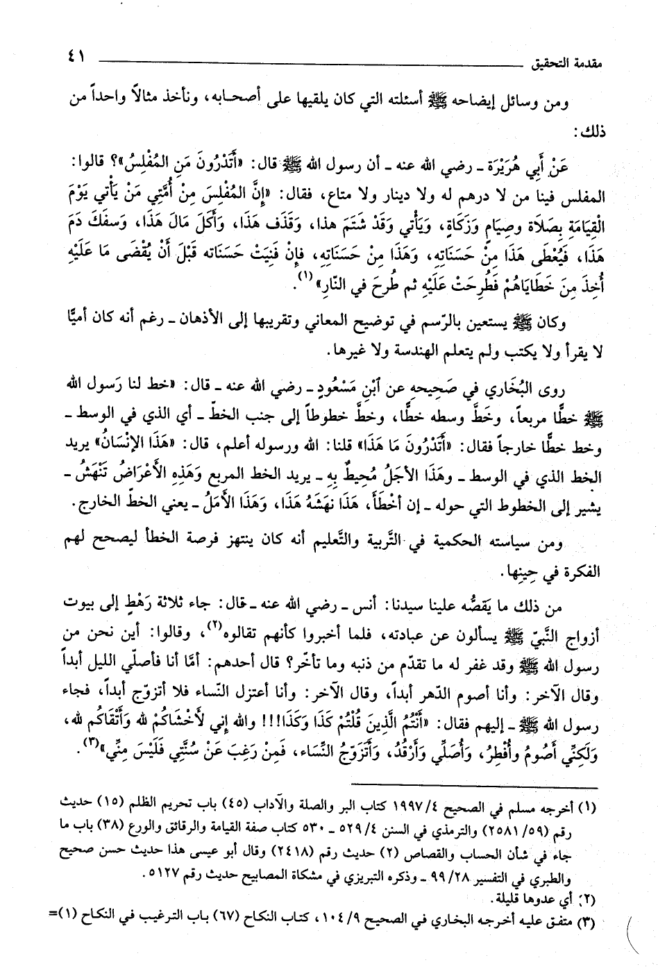 عن أبي هريرة- رضي اللَّه عنه- أن رسول اللَّه صلّى اللَّه عليه وسلم قال: «أتدرون من المفلس» ؟ قالوا: