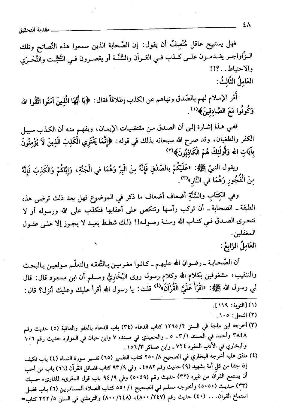 وفي الكتاب والسّنّة أضعاف أضعاف ما ذكر في الموضوع فهل بعد ذلك ترضى هذه الطبقة- الصحابة- أن تركب رأسها وتنكص على أعقابها فتكذب على اللَّه ورسوله أو لا تتحرى الصدق في كتاب اللَّه وسنة رسوله!! ذلك شطط بعيد لا يجوز إلا على عقول المغفلين.