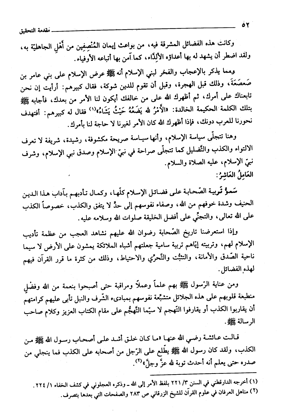 ومن عناية الرّسول صلّى اللَّه عليه وسلم بهم علما وعملا ومراقبة حتى أصبحوا بنعمة من اللَّه وفضل منطبعة قلوبهم على هذه الجلائل متشبّعة نفوسهم بمبادئ الشّرف والنبل تأبى عليهم كرامتهم أن يقاربوا الكذب أو يقارفوا التّهجم لا سيّما التّهجّم على مقام الكتاب العزيز وكلام صاحب الرسالة صلّى اللَّه عليه وسلم.