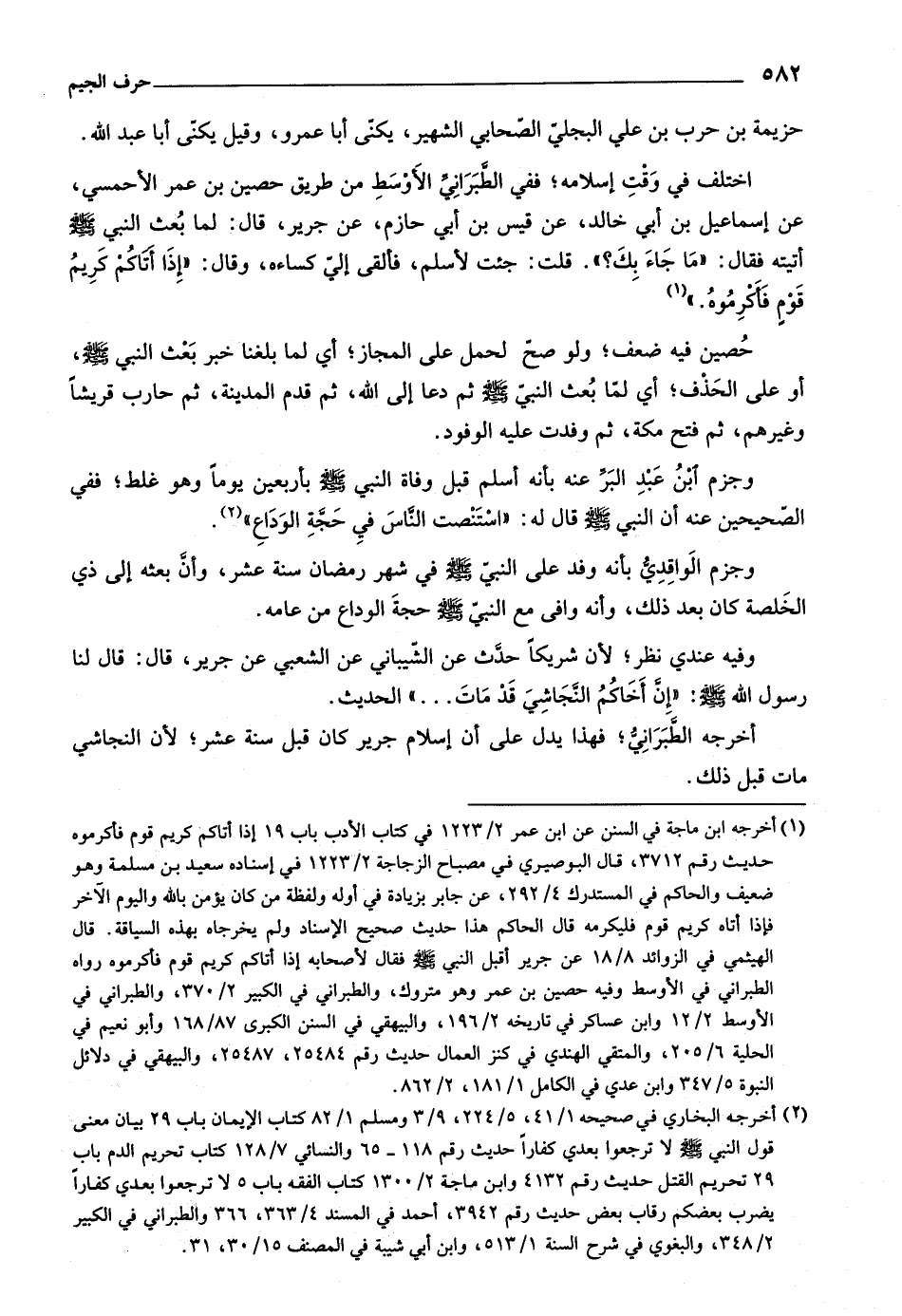 وجزم الواقديّ بأنه وفد على النبيّ صلّى اللَّه عليه وسلم في شهر رمضان سنة عشر، وأنّ بعثه إلى ذي الخلصة كان بعد ذلك، وأنه وافى مع النبيّ صلّى اللَّه عليه وسلم حجة الوداع من عامه.