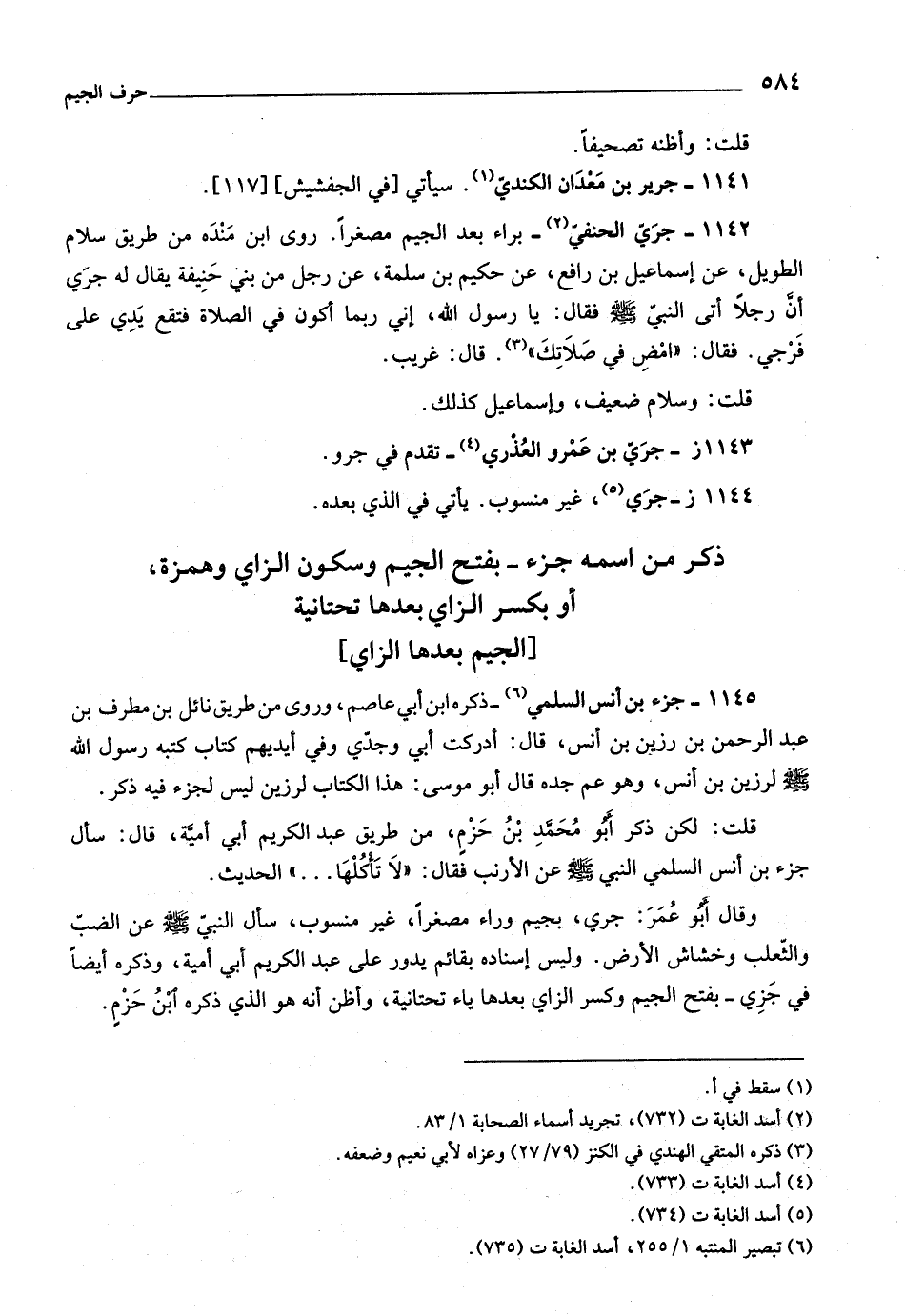 [ (٥) ] أسد الغابة ت (٧٣٤) .