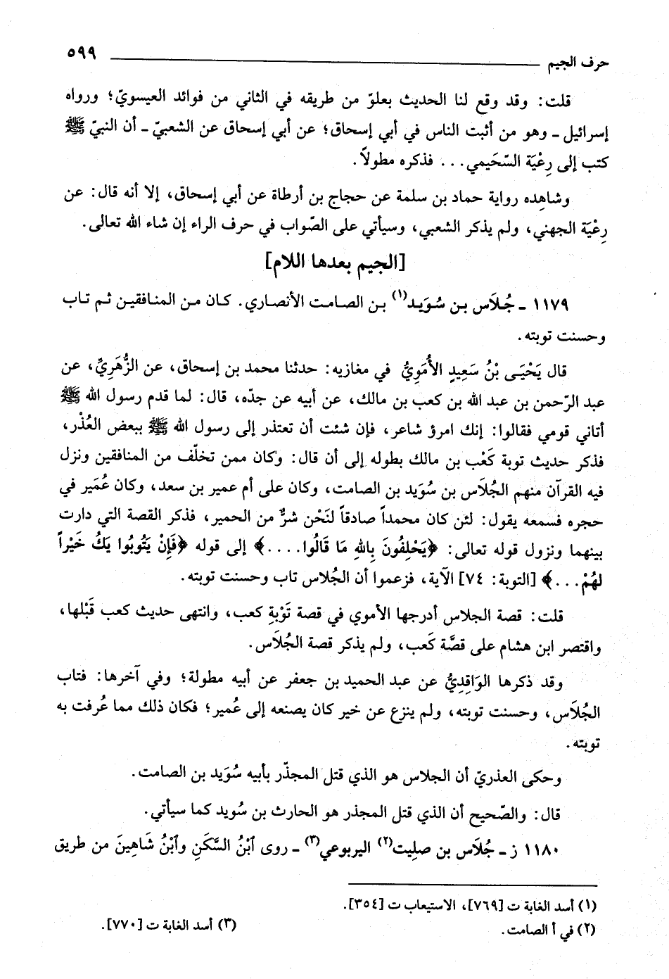 قلت: قصة الجلاس أدرجها الأموي في قصة توبة كعب، وانتهى حديث كعب قبلها، واقتصر ابن هشام على قصّة كعب، ولم يذكر قصة الجلاس.