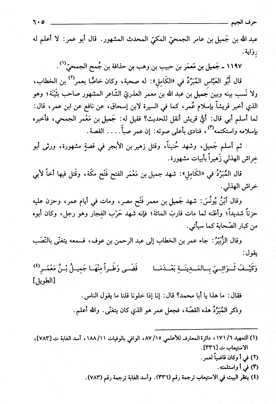 [ (١) ] التمهيد ٦/ ١٧١، دائرة المعارف للأعلمي ١٥/ ٨٧، الوافي بالوفيات ١١/ ١٨٨، أسد الغابة ت [٧٨٣] ، الاستيعاب ت [٣٣٦] .