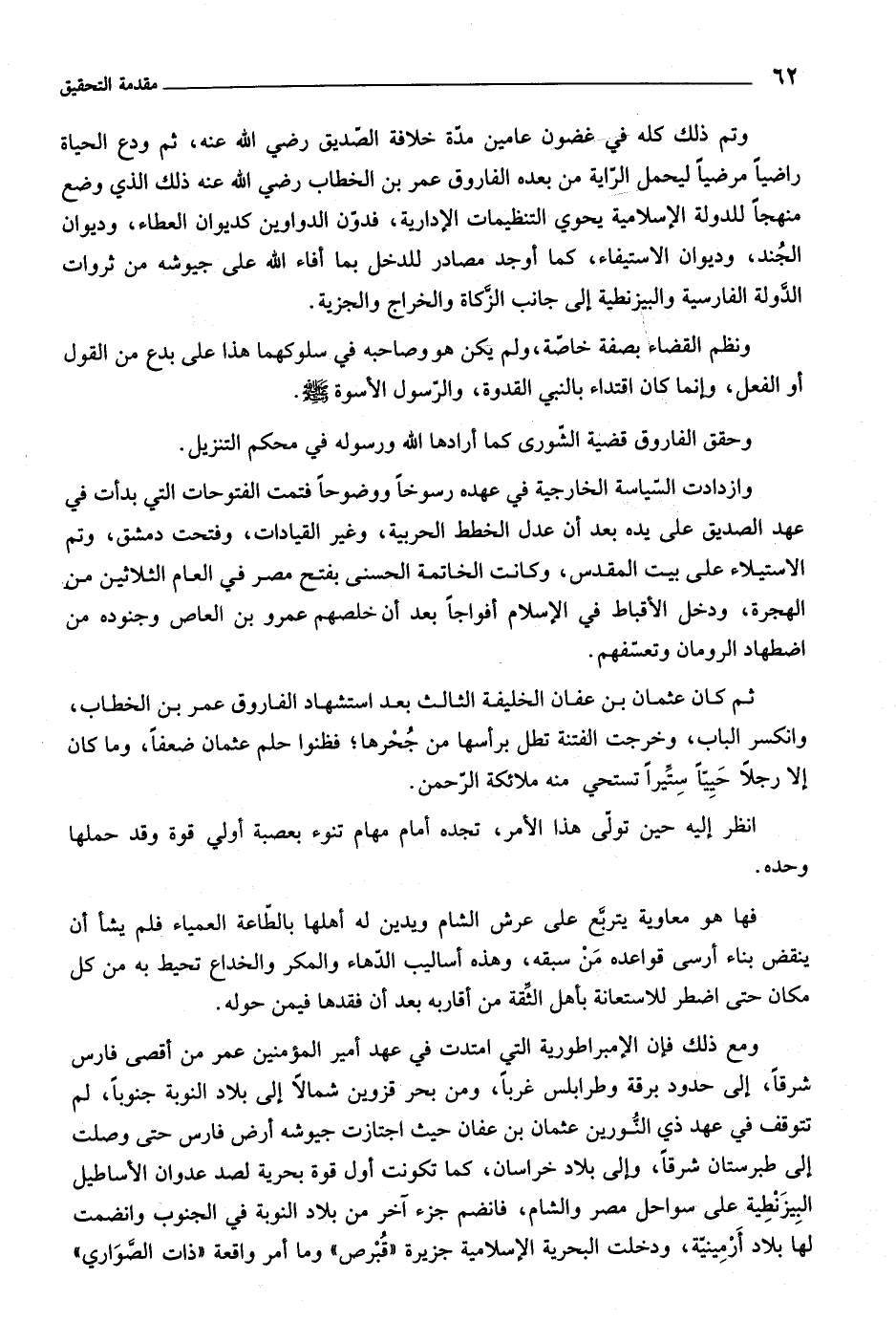 ومع ذلك فإن الإمبراطورية التي امتدت في عهد أمير المؤمنين عمر من أقصى فارس شرقا، إلى حدود برقة وطرابلس غربا، ومن بحر قزوين شمالا إلى بلاد النوبة جنوبا، لم تتوقف في عهد ذي النّورين عثمان بن عفان حيث اجتازت جيوشه أرض فارس حتى وصلت إلى طبرستان شرقا، وإلى بلاد خراسان، كما تكونت أول قوة بحرية لصد عدوان الأساطيل البيزنطية على سواحل مصر والشام، فانضم جزء آخر من بلاد النوبة في الجنوب وانضمت لها بلاد أرمينيّة، ودخلت البحرية الإسلامية جزيرة «قبرص» وما أمر واقعة «ذات الصّواري»
