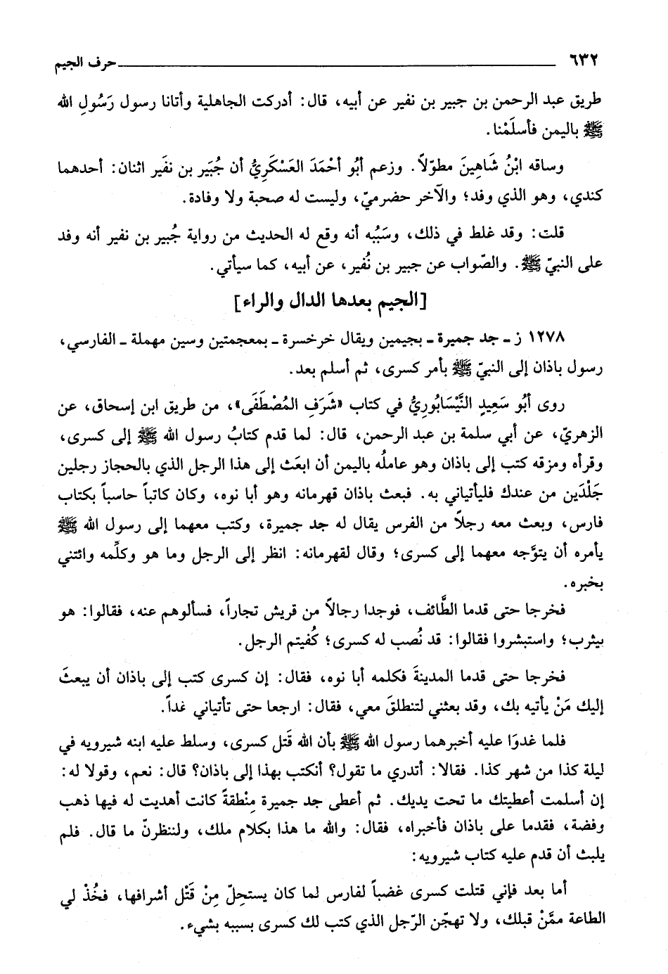 إن أسلمت أعطيتك ما تحت يديك. ثم أعطى جد جميرة منطقة كانت أهديت له فيها ذهب وفضة، فقدما على باذان فأخبراه، فقال: واللَّه ما هذا بكلام ملك، ولننظرنّ ما قال. فلم يلبث أن قدم عليه كتاب شيرويه: