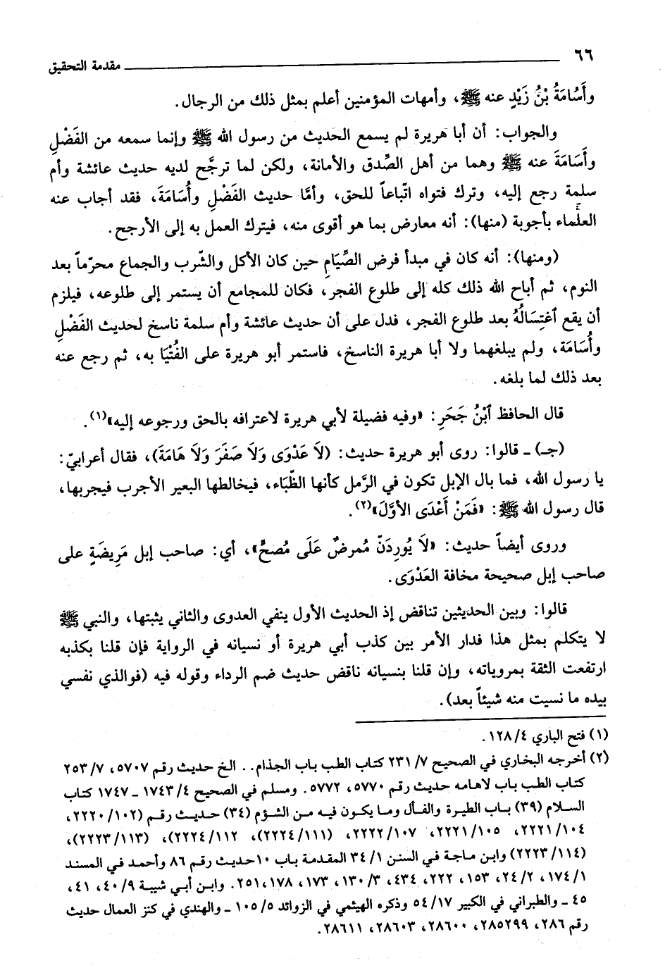 روى أبو هريرة حديث: (لا عدوى ولا صفر ولا هامة) ، فقال أعرابيّ:
