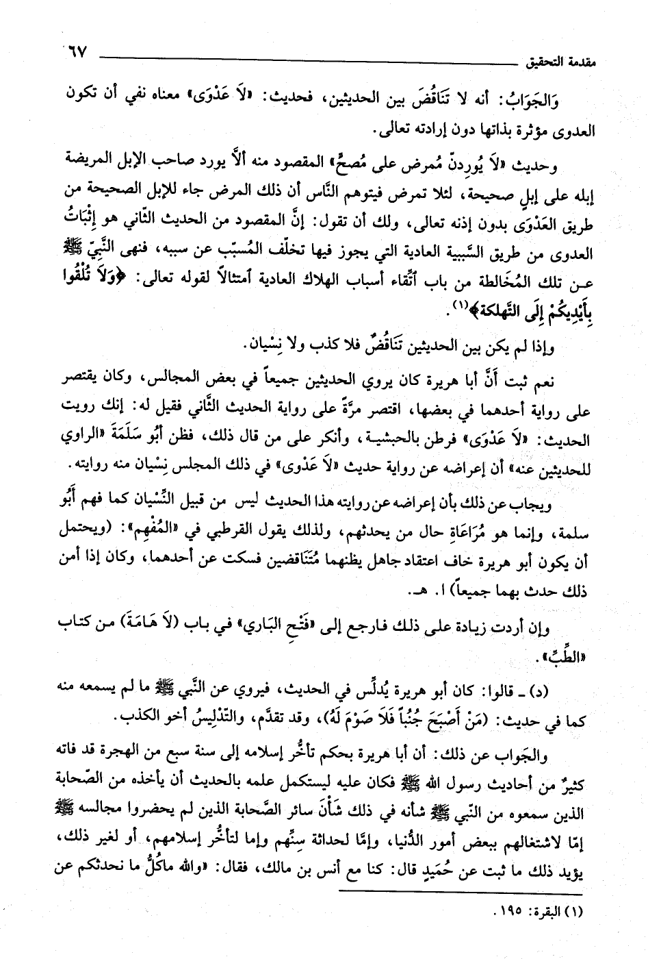 نعم ثبت أنّ أبا هريرة كان يروي الحديثين جميعا في بعض المجالس، وكان يقتصر على رواية أحدهما في بعضها، اقتصر مرّة على رواية الحديث الثّاني فقيل له: إنك رويت الحديث: «لا عدوى» فرطن بالحبشية، وأنكر على من قال ذلك، فظن أبو سلمة «الراويّ للحديثين عنه» أن إعراضه عن رواية حديث «لا عدوى» في ذلك المجلس نسيان منه روايته.