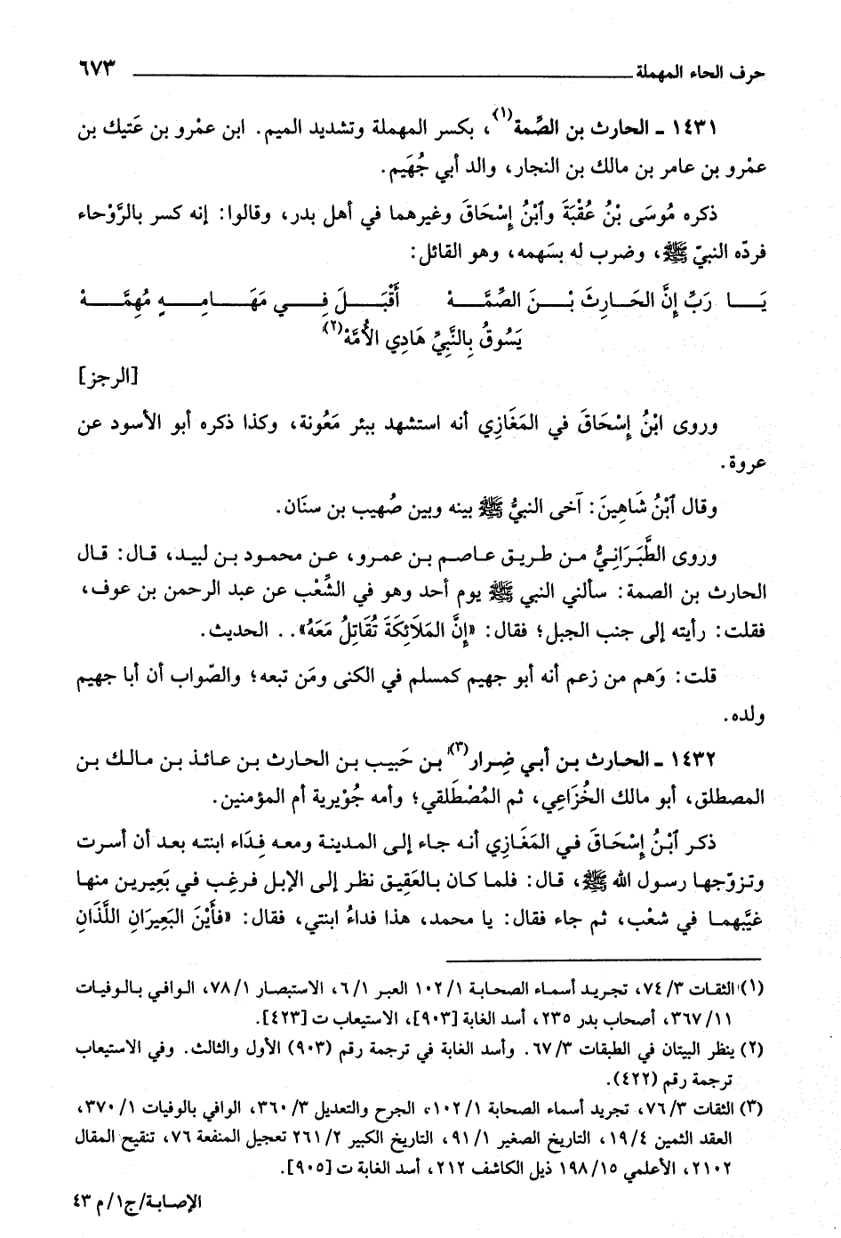 ١٤٣١- الحارث بن الصّمة [ (١) ] ،