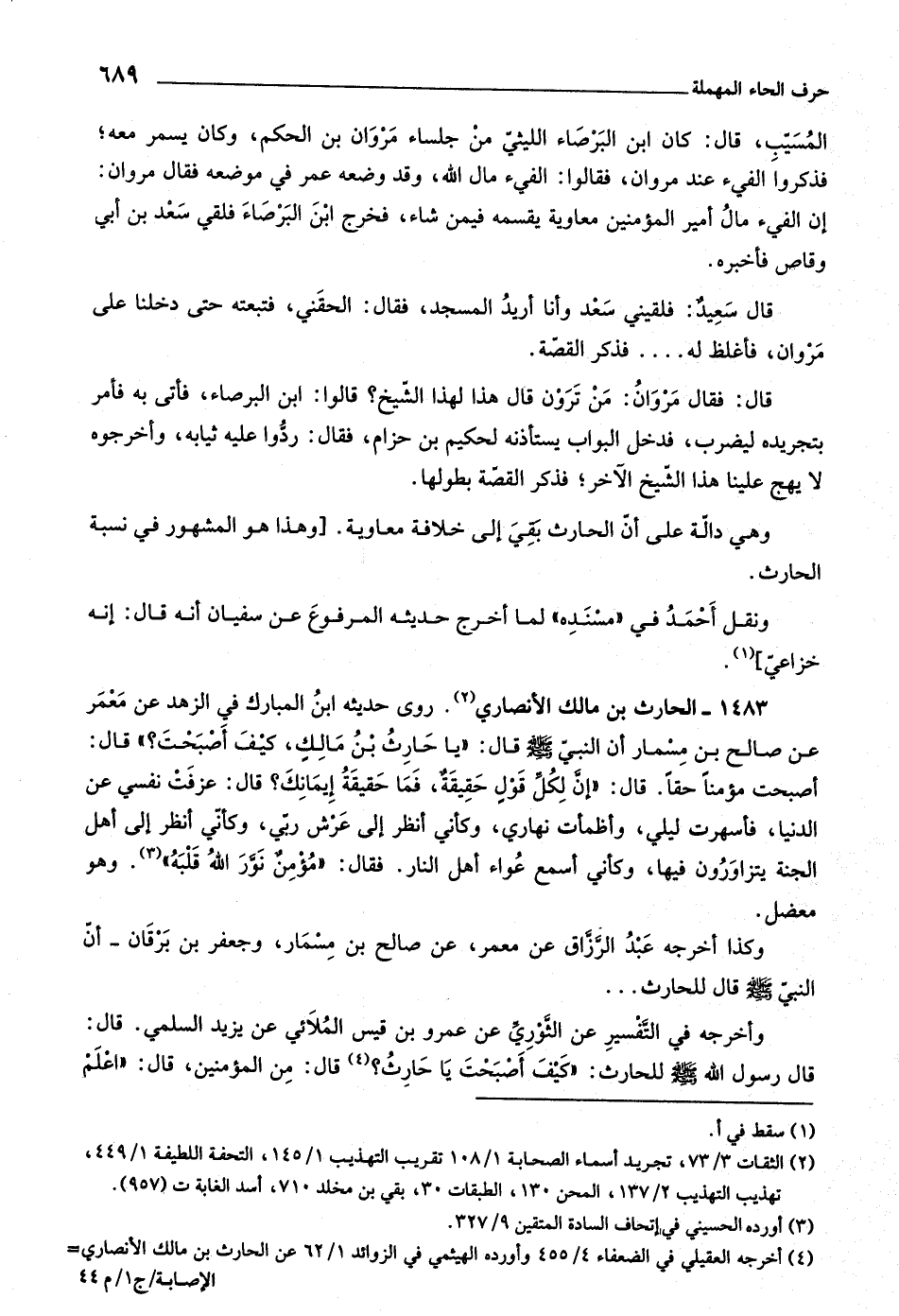 قال رسول اللَّه صلّى اللَّه عليه وسلم للحارث: «كيف أصبحت يا حارث؟ [ (٤) ] قال: من المؤمنين، قال: «اعلم