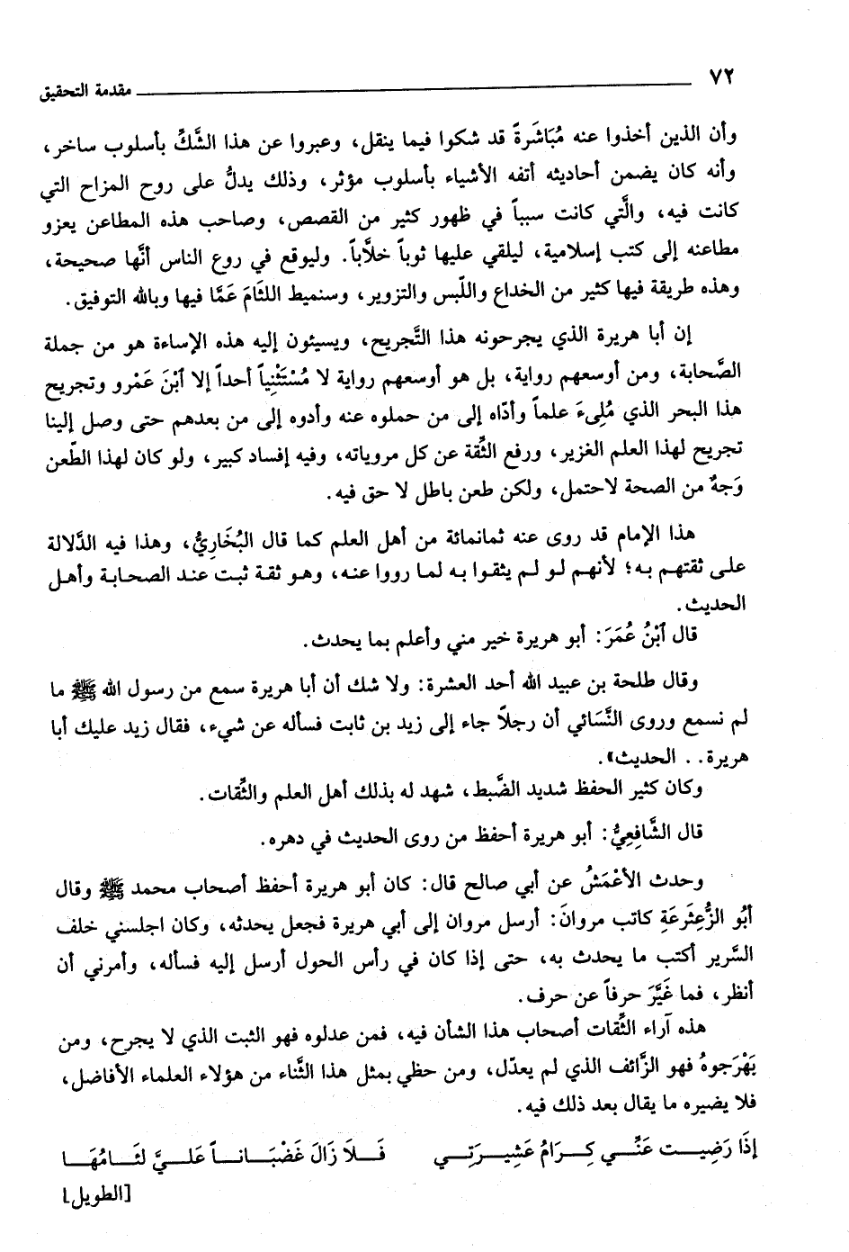 إن أبا هريرة الّذي يجرحونه هذا التّجريح، ويسيئون إليه هذه الإساءة هو من جملة الصّحابة، ومن أوسعهم رواية، بل هو أوسعهم رواية لا مستثنيا أحدا إلا ابن عمرو وتجريح هذا البحر الّذي مليء علما وأدّاه إلى من حملوه عنه وأدوه إلى من بعدهم حتى وصل إلينا تجريح لهذا العلم الغزير، ورفع الثّقة عن كل مروياته، وفيه إفساد كبير، ولو كان لهذا الطّعن وجه من الصحة لاحتمل، ولكن طعن باطل لا حق فيه.