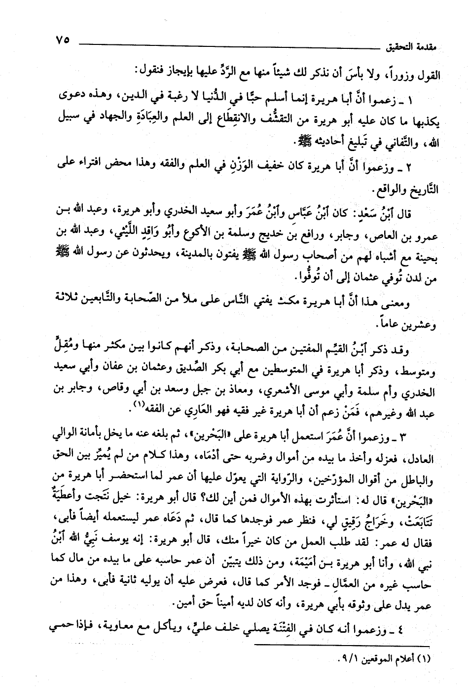 ٢- وزعموا أنّ أبا هريرة كان خفيف الوزن في العلم والفقه وهذا محض افتراء على التّاريخ والواقع.