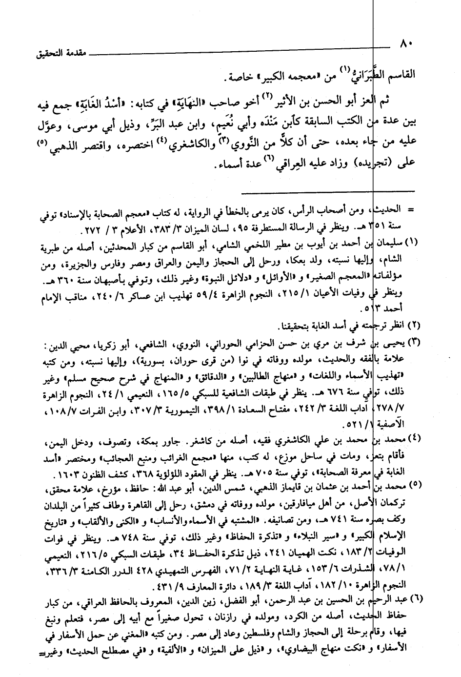 [ (٦) ] عبد الرحيم بن الحسين بن عبد الرحمن، أبو الفضل، زين الدين، المعروف بالحافظ العراقي، من كبار حفاظ الحديث، أصله من الكرد، ومولده في رازنان، تحول صغيرا مع أبيه إلى مصر، فتعلم ونبغ فيها، وقام برحلة إلى الحجاز والشام وفلسطين وعاد إلى مصر. ومن كتبه «المغني عن حمل الأسفار في الأسفار» و «نكت منهاج البيضاوي» ، و «ذيل على الميزان» و «الألفية» و «في مصطلح الحديث» وغير