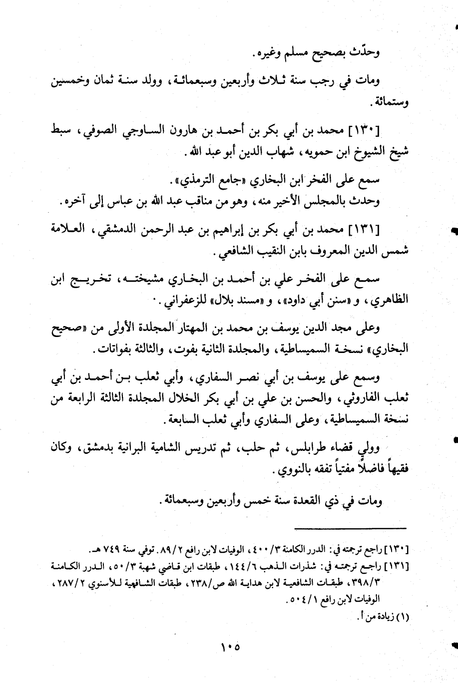130- راجع ترجمته في: الدرر الكامنة 3/400, الوفيات لابن رافع 2/89, توفي سنة 749.
