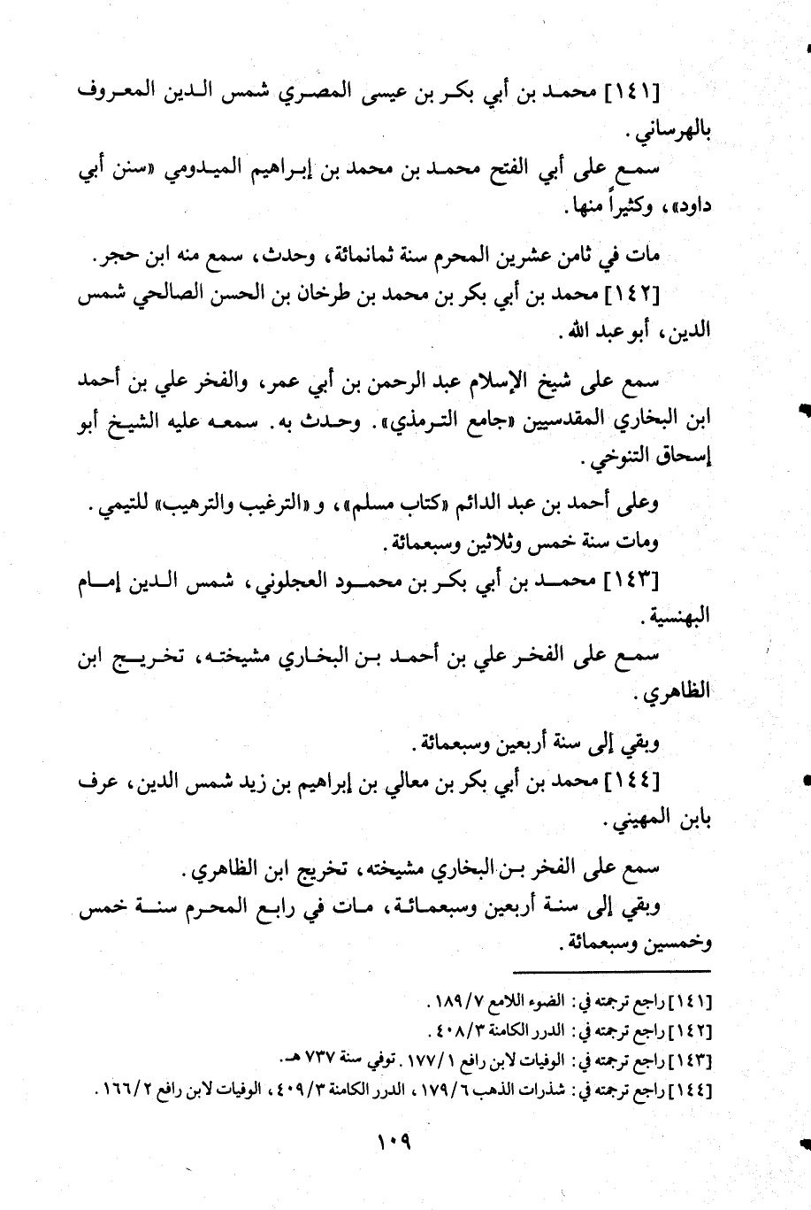 144- راجع ترجمته في: شذرات الذهب 6/179, الدرر الكامنة 3/409, الوفيات لابن رافع 2/166.