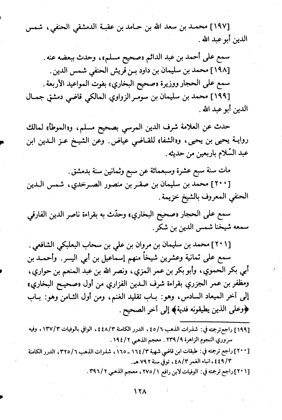 198- محمد بن سليمان بن داود بن قريش لحنفي شمس الدين سمع على الحجار ووزيرة صحيح البخاري بفوت المواعيد الآربعة.