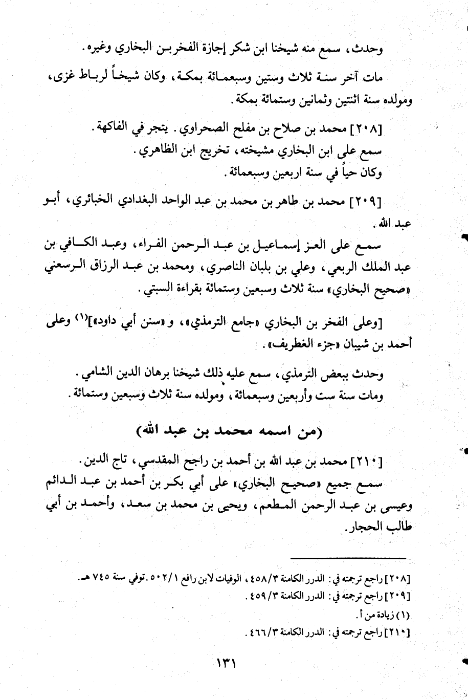 208- راجع ترجمته في: الدرر الكامنة 3/458, الوفيات لابن رافع 1/502, توفي سنة 745هـ.