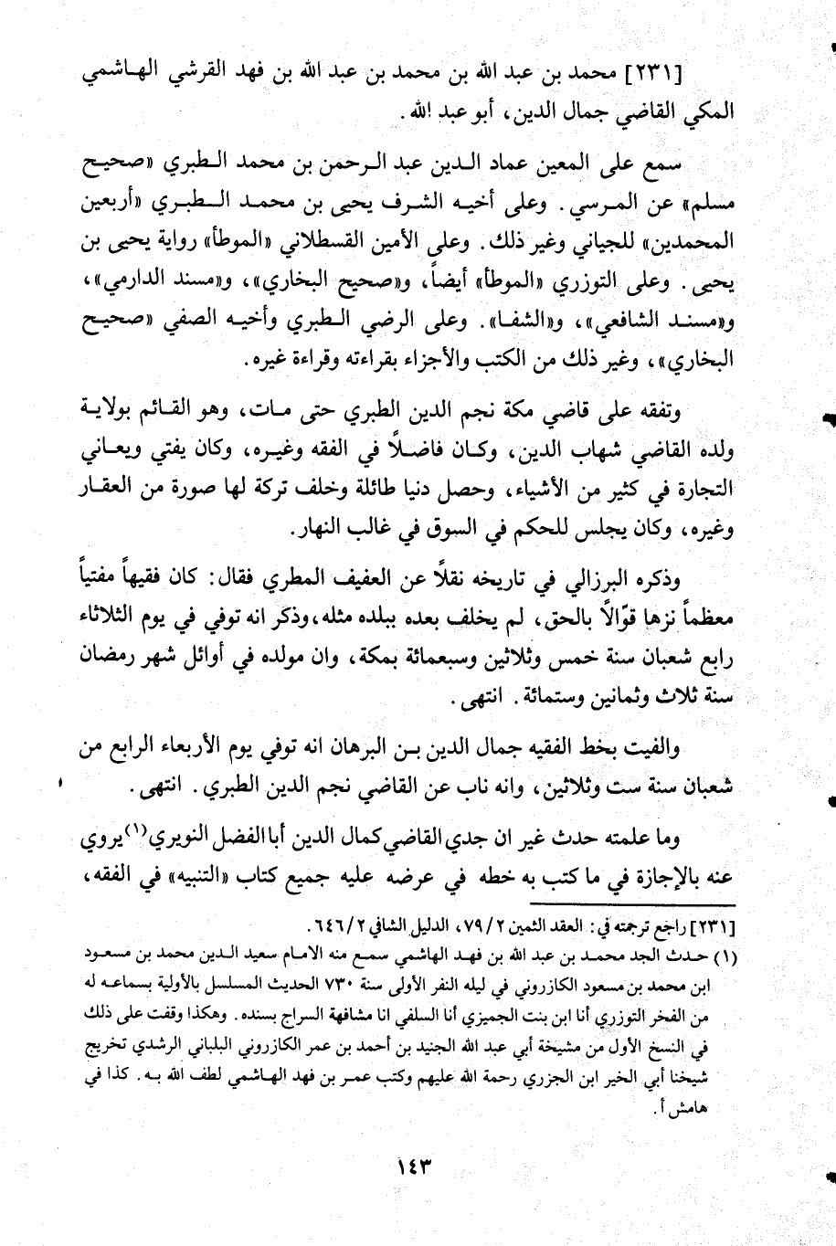 231- محمد بن عبد الله بن محمد بن عبد الله بن فهد القرشي الهاشمي المكي القاضي جمال الدين أبو عبد الله.