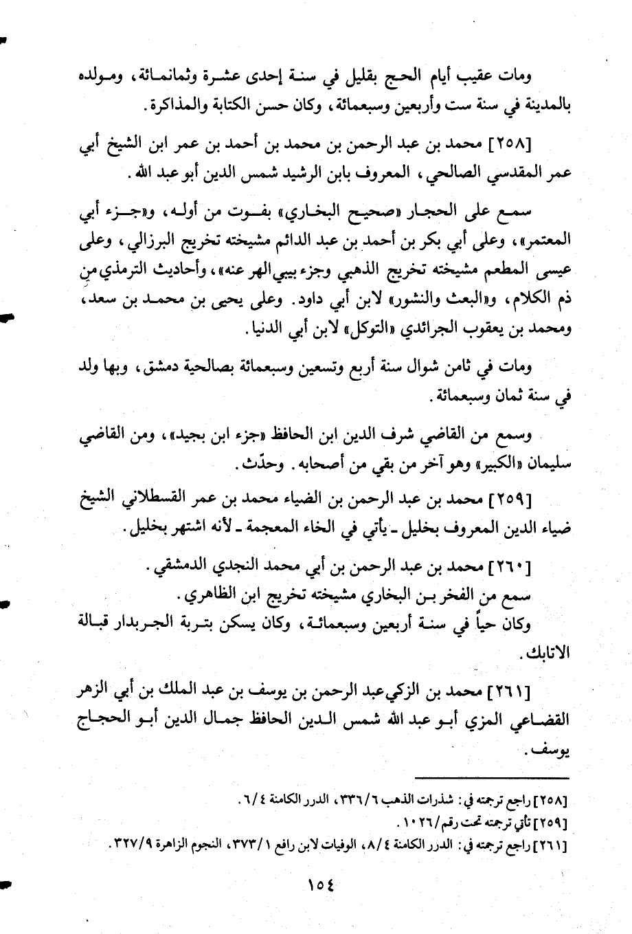 260- محمد بن عبد الرحمن بن أبي محمد النجدي الدمشقي سمع من الفخر بن البخاري مشيخته تخريج ابن الظاهري.