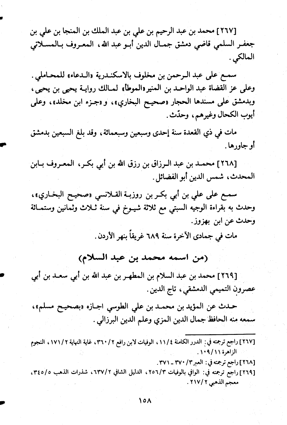 269- راجع ترجمته في: الوافي بالوفيات 3/256, الدليل الشافي 2/637, شذرات الذهب 5/345, معجم الذهبي 2/217.