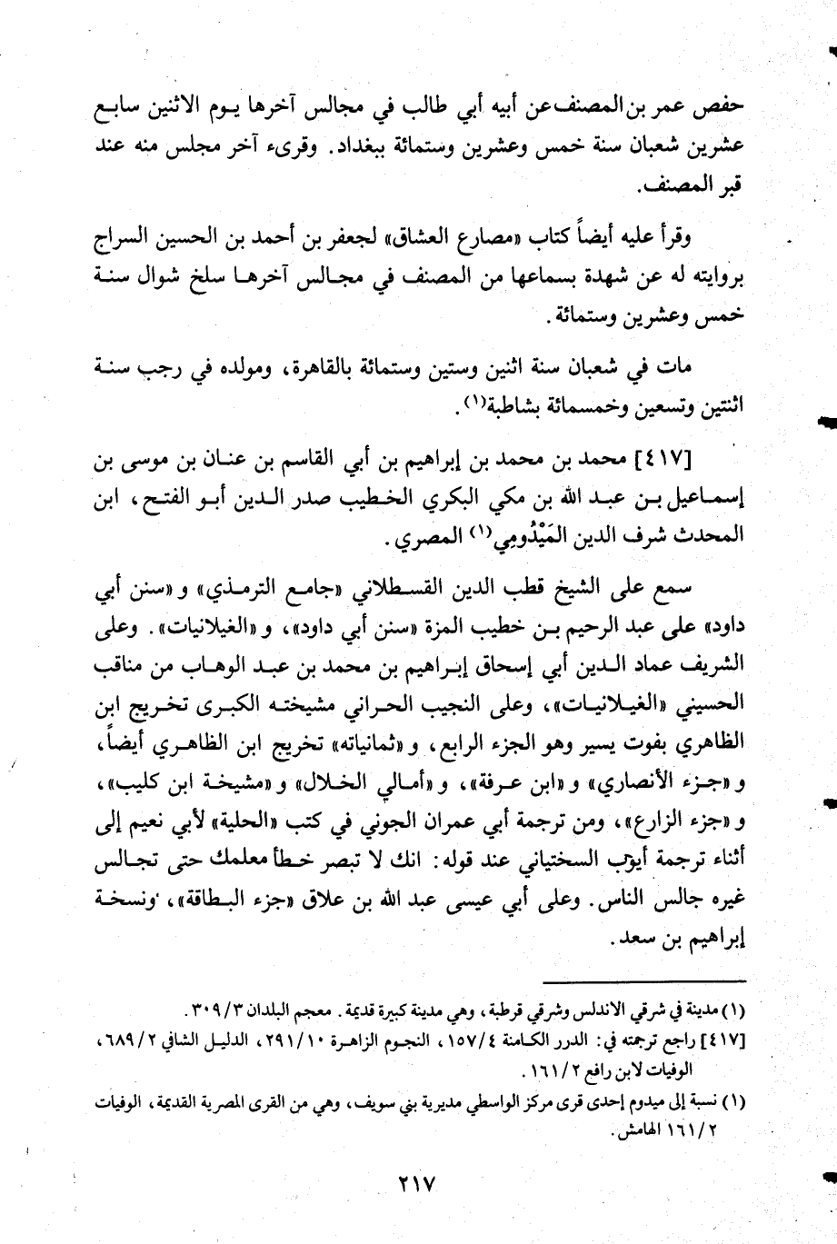 417- راجع ترجمته في: الدرر الكامنة 4/157, النجوم الزاهرة 10/291. الدليل الشافي 2/689, الوفيات لابن رافع 2/161.
