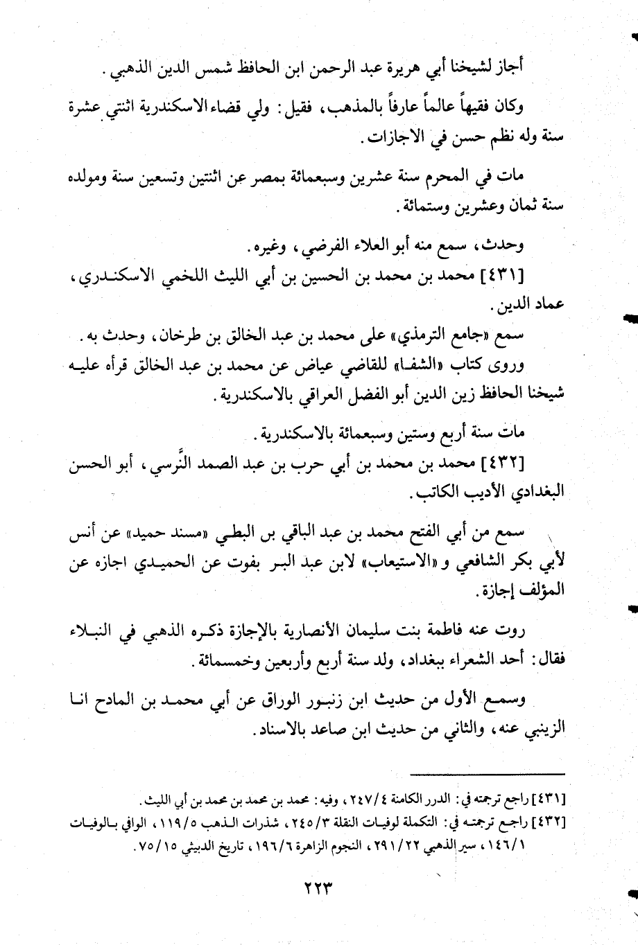 432- راجع ترجمته في: التكملة لوفيات النقلة 3/245, شذرات الذهب 5/119. الوافي بالوفيات 1/146, سير الذهبي 22/291, النجوم الزاهرة 6/196, تاريخ الدبيثي 15/75.