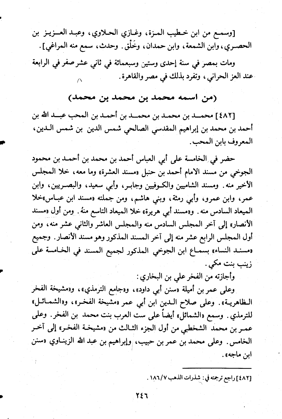 482- محمد بن محمد بن محمد بن أحمد بن المحب عبد الله بن أحمد بن محمد بن ابراهيم المقدسي الصالحين شمس الدين بن شمس الدين المعروف بابن المحب.