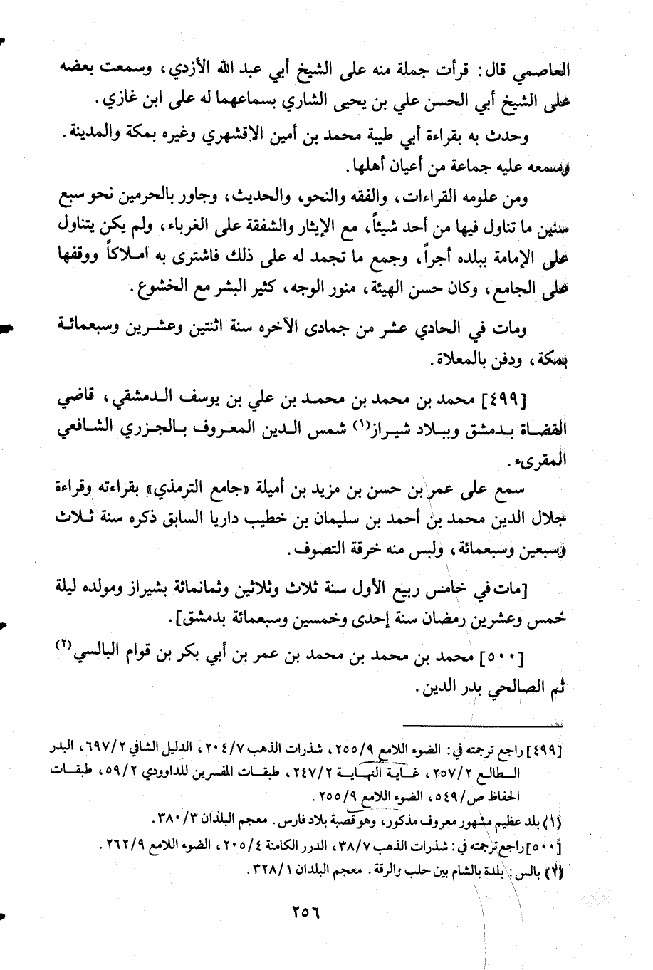 499- راجع ترجمته في: الضوء اللامع 9/255, شذرات الذهب 7/204, الدليل الشافي 2/697, البدر الطالع 2/257, غاية النهاية 2/247, طبقات المفسرين للداوودي 2/59, طبقات الحفاظ ص 549, الضوء اللامع 9/255.