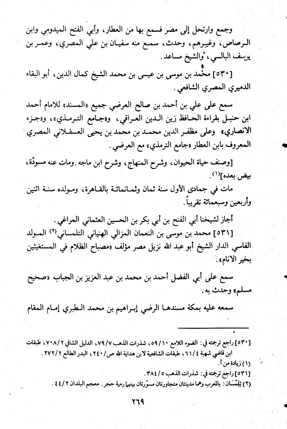 530- محمد بن موسى بن عيسى بن محمد الشيخ كمال الدين أبوالبقاء الدميري المصري الشافعي.