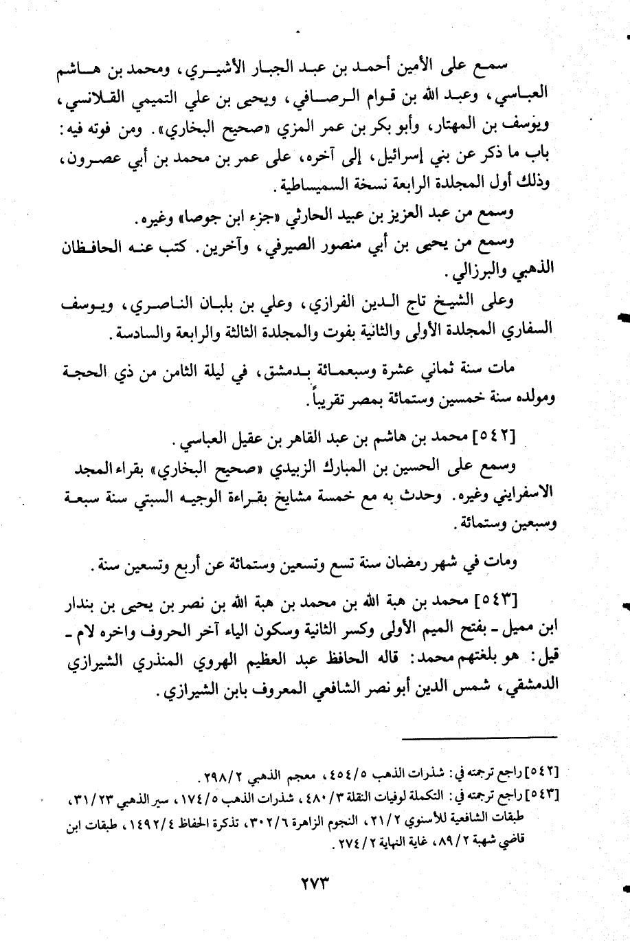 543- راجع ترجمته في: التكملة لوفيات النقلة 3/480, شذرات الذهب 5/174, سير الذهبي 23/31, طبقات الشافعية للأسنوي 2/21, النجوم الزاهرة 6/302, تذكرة الحفاظ 4/1492, طبقات ابن قاضي شهبة 2/89, غاية النهاية 2/274.