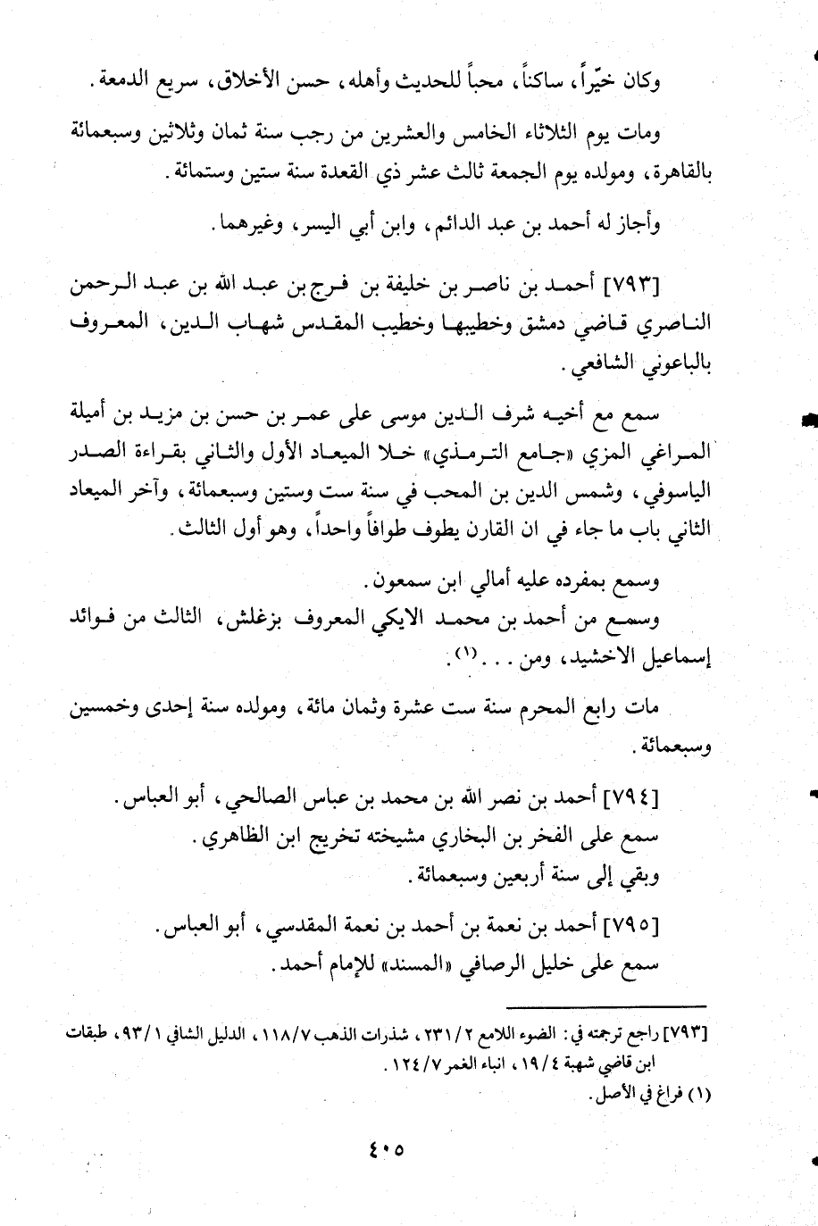 793- راجع ترجمته في: الضوء اللامع 2/231, شذرات الذهب 7/118, الدليل الشافي 1/93, طبقات ابن قاضي شهبة 4/19, أنباء الغمر 7/124.