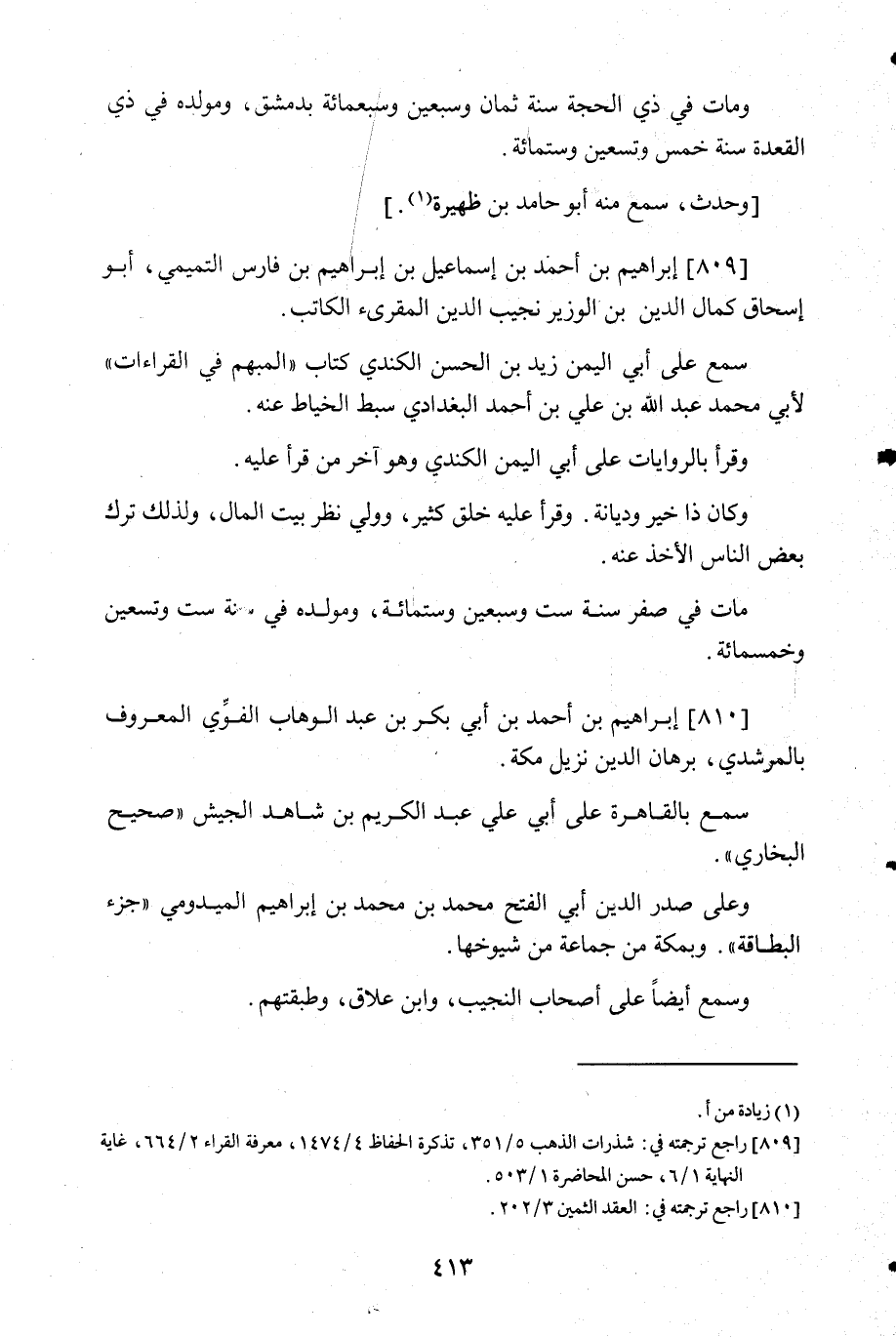 809- ابراهيم بن أحمد بن اسماعيل بن ابراهيم بن فارس التميمي أبواسحاق وكمال الدين بن الوزير نجيب الدين المقرئ الكاتب.