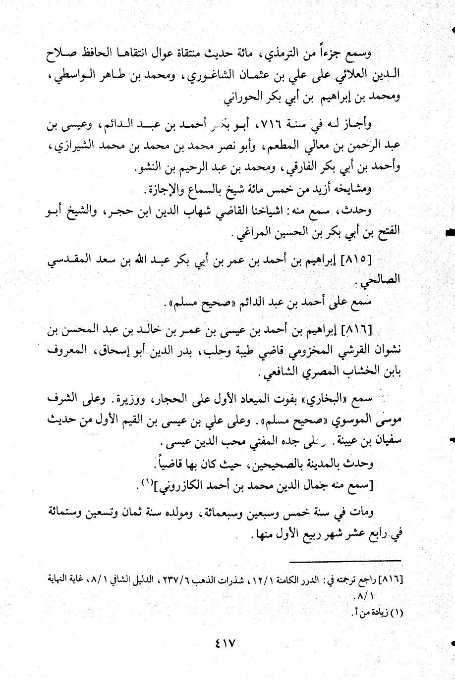 816- راجع ترجمته في: الدرر الكامنة 1/12, شذرات الذهب 6/237, الدليل الشافي 1/8, غاية النهاية 1/8.