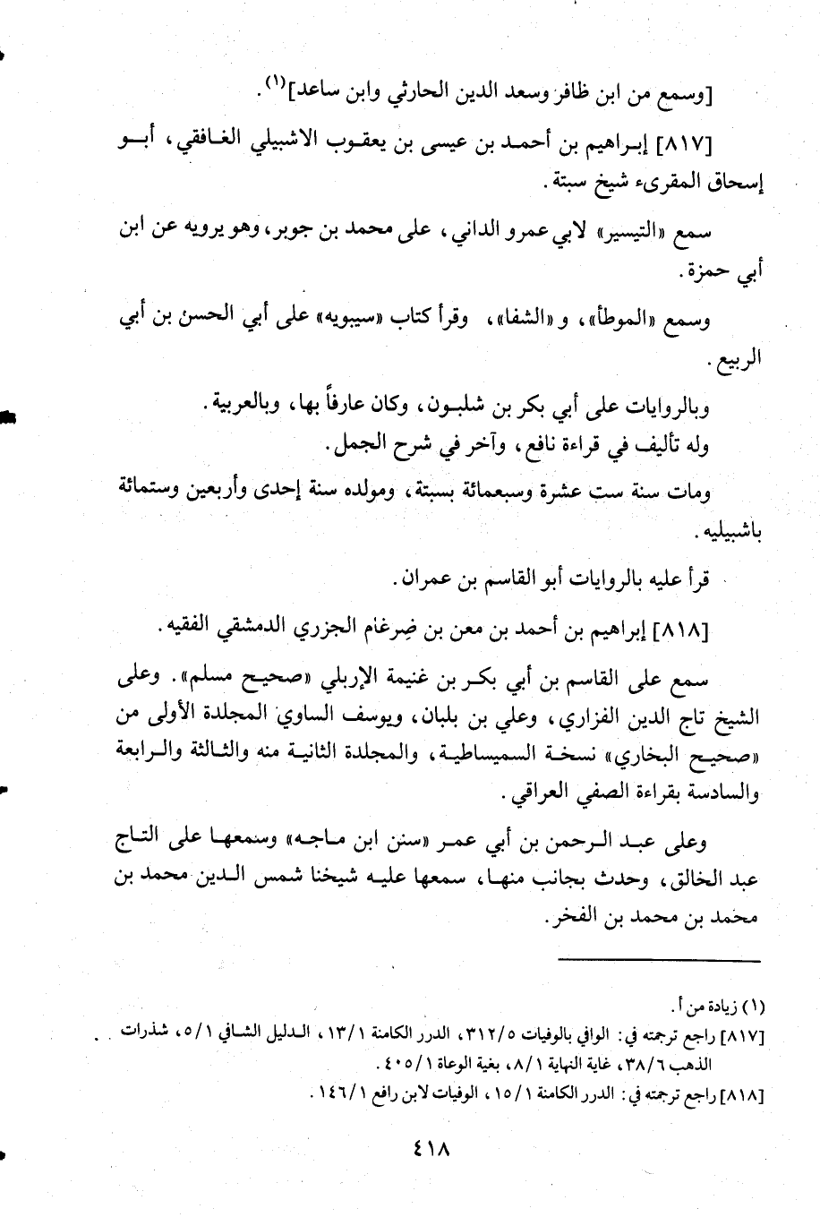 818- راجع ترجمته في: الدرر الكامنة 1/15, الوفيات لابن رافع 1/146.
