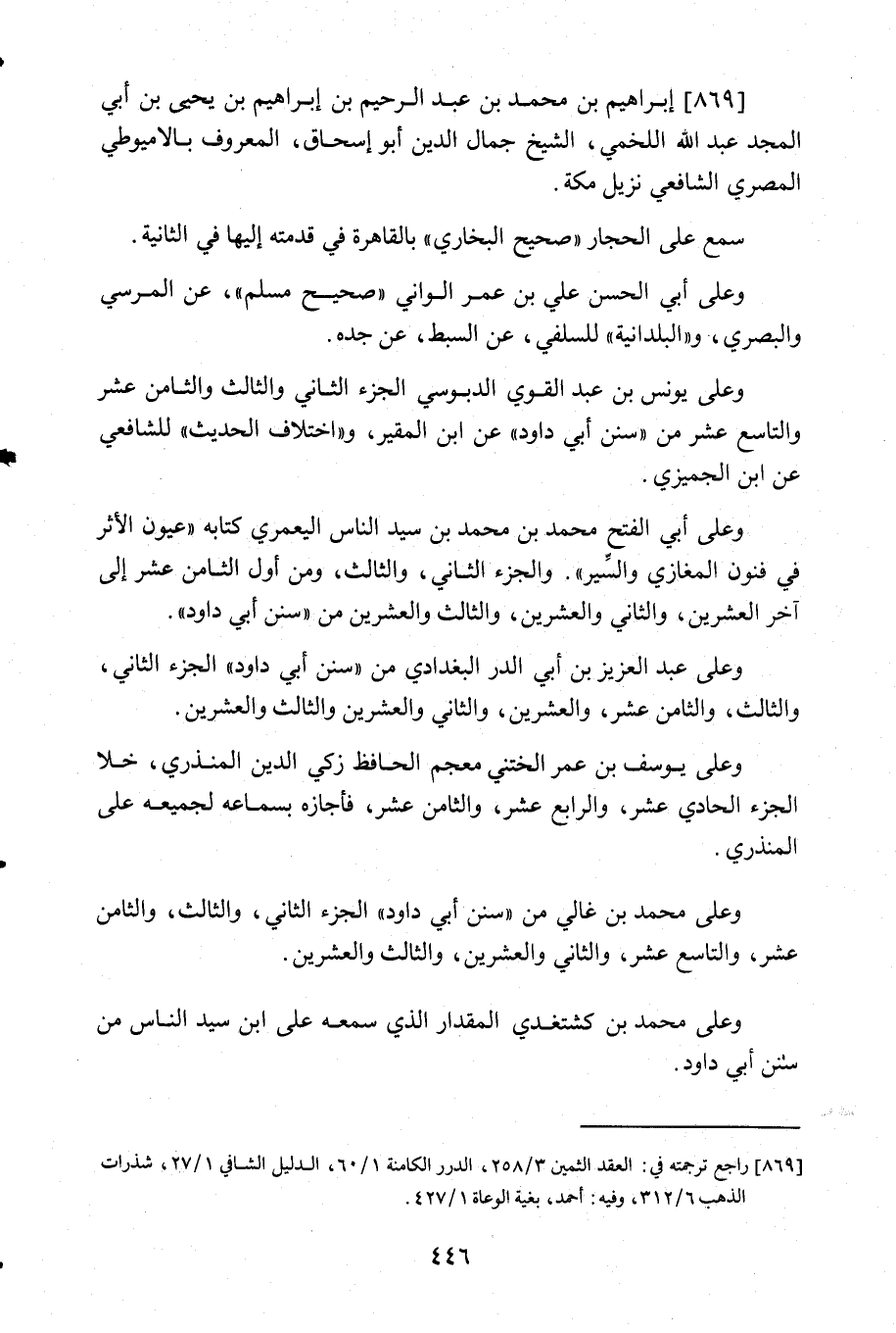869- راجع ترجمته في: العقد الثمين 3/258, الدرر الكامنة 1/60, الدليل الشافي 1/27, شذرات الذهب 6/312, وفيه: أحمد بغية الوعاة 1/427.