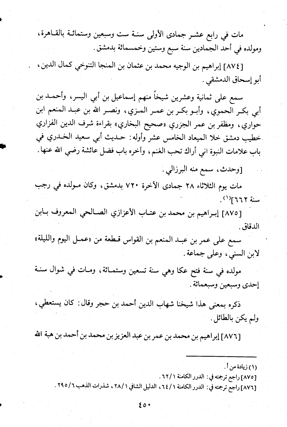 876- راجع ترجمته في: الدرر الكامنة 1/64, الدليل الشافي 1/28, شذرات الذهب 6/295.