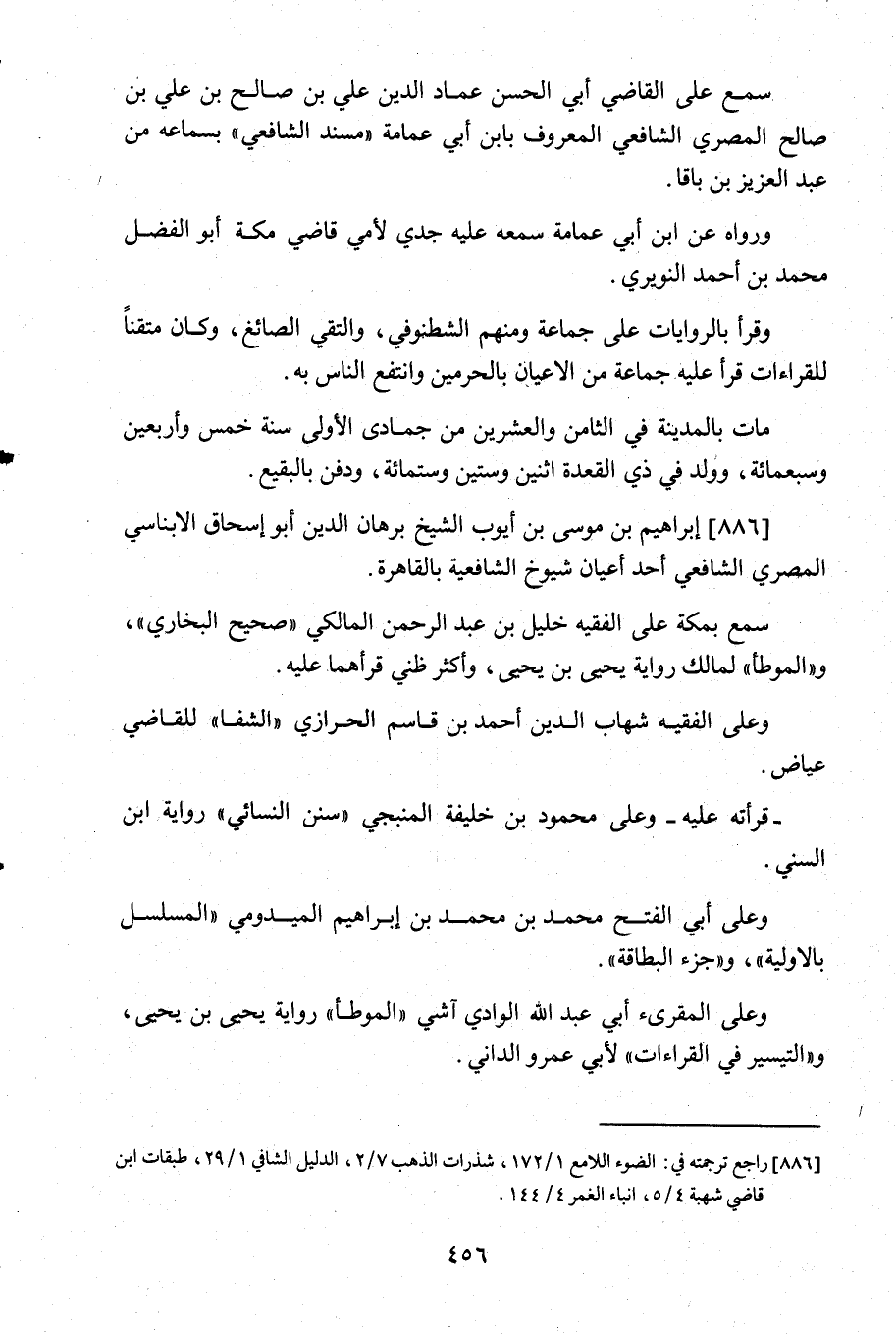 886- راجع ترجمته في: الضوء اللامع 1/172, شذرات الذهب 7/2, الدليل الشافي 1/29. طبقات ابن قاضي شهبة 4/5. أنباء الغمر 4/144.