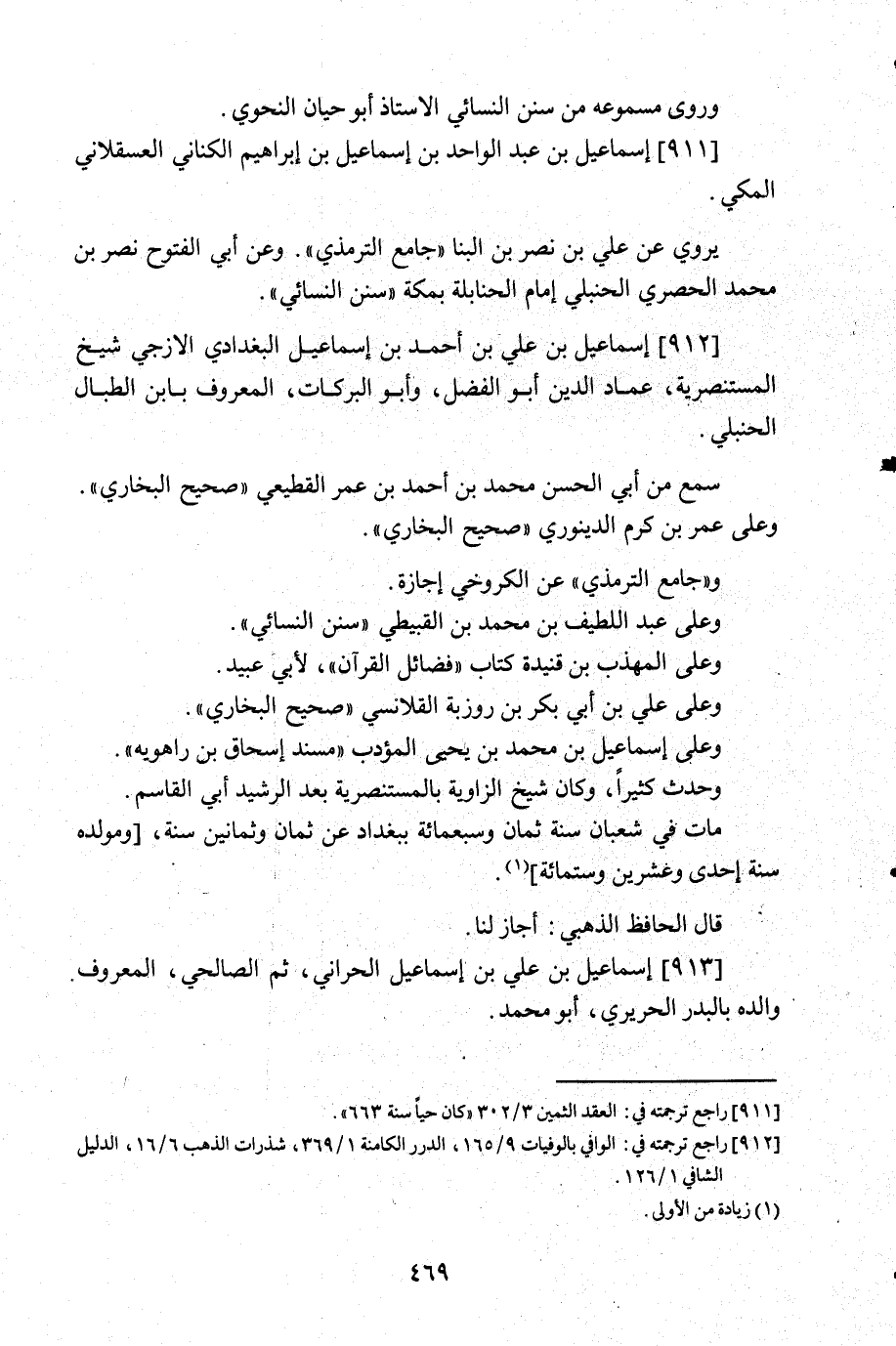 912- إسماعيل بن علي بن أحمد بن إسماعيل البغدادي الازجي شيخ المستنصرية عماد الدين أبو الفضل وأبو البركات المعروف بابن الطبال الحنبلي.