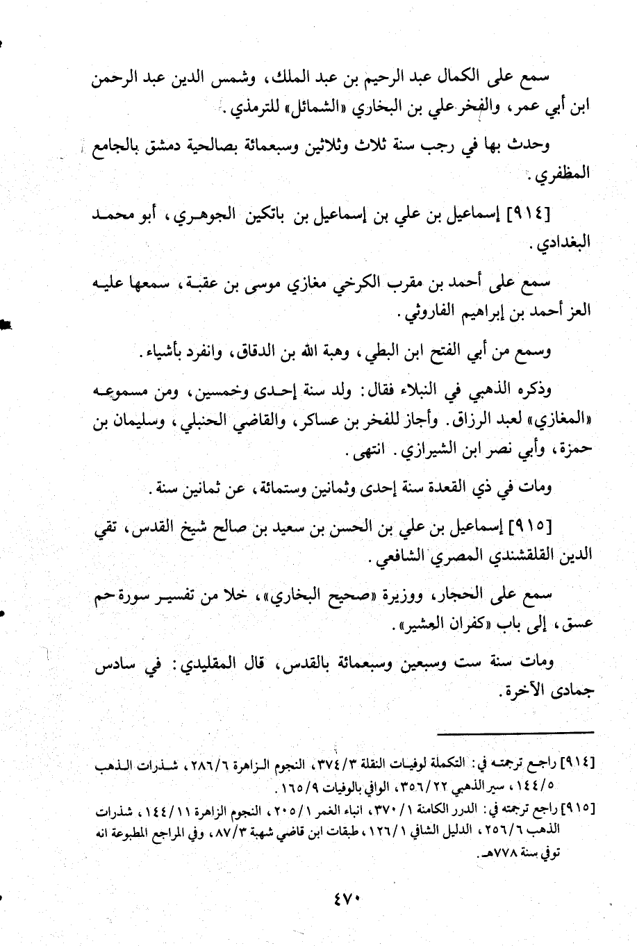 915- راجع ترجمته في: الدرر الكامنة 1/370, أنباء الغمر 1/205, النجوم الزاهرة 11/144, شذرات الذهب 6/256, الدليل الشافي 1/126, طبقات ابن قاضي شهبة 3/87, وفي المراجع المطبوعة أنه توفي سنة 778هـ.