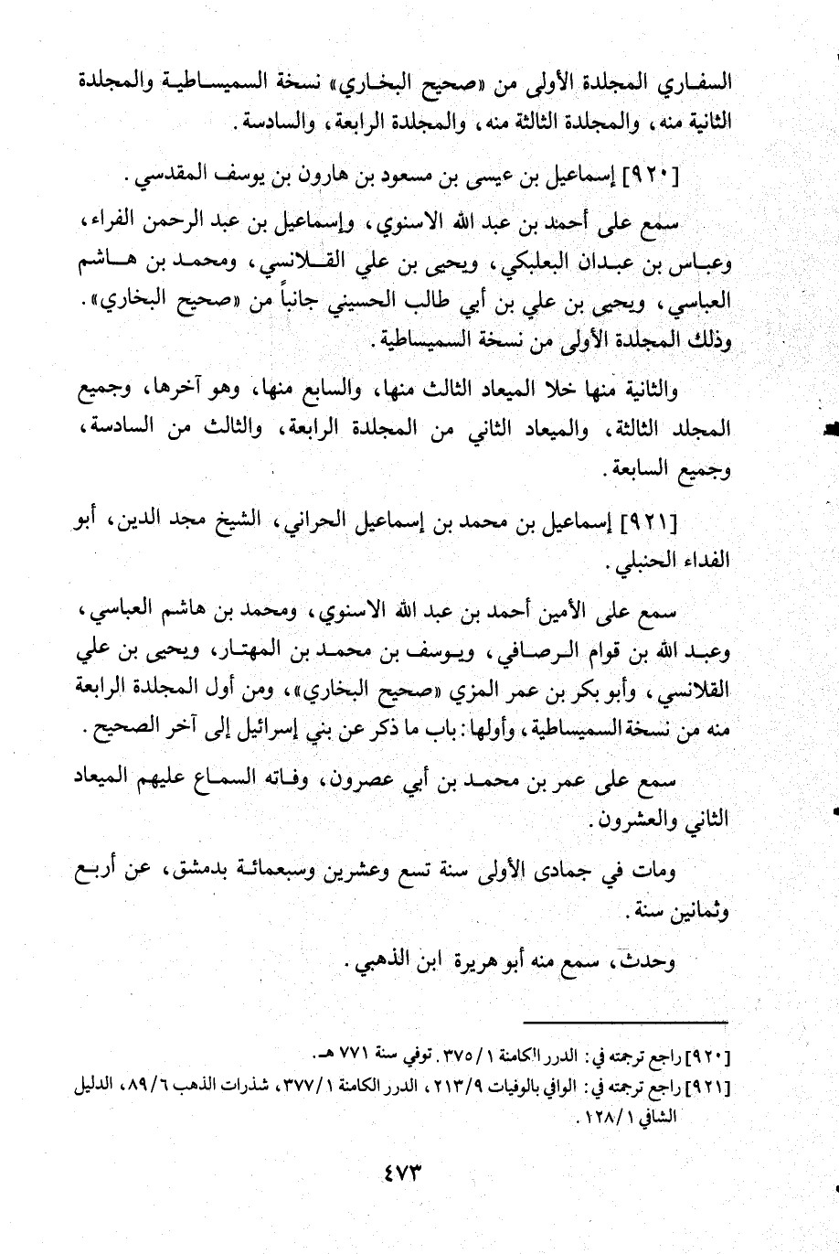 920- إسماعيل عيسى بن مسعود بن هارون بن يوسف المقدسي.