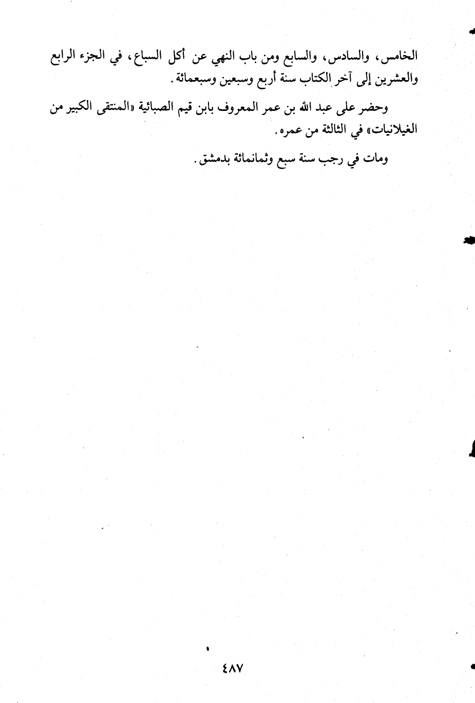 الخامس والسادس والسابع ومن باب النهي عن اكل السباع في الجزء الرابع والعشرين إلى آخر الكتاب سنة أربع وسبعين وسبعمائة.