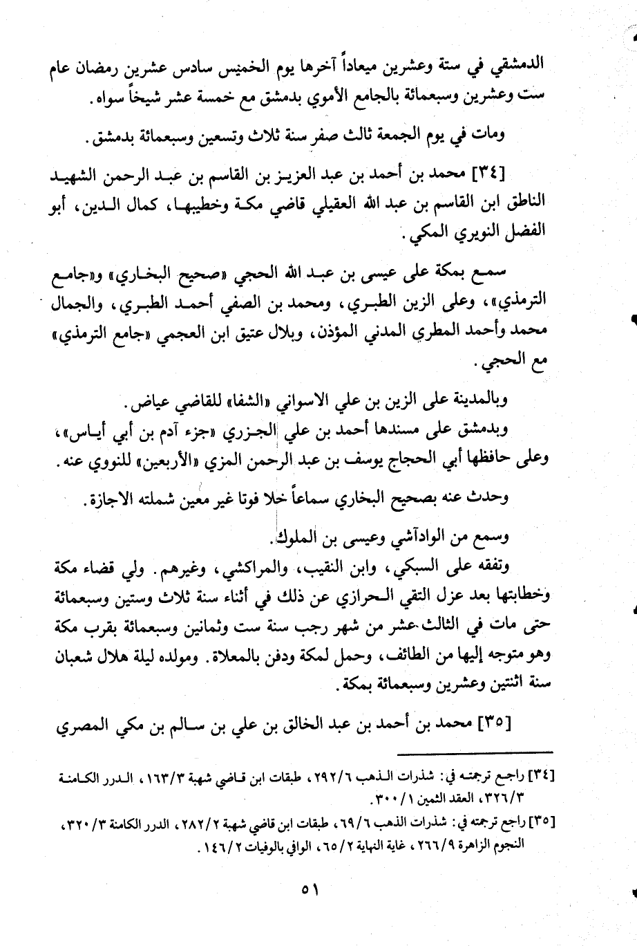 34- راجع ترجمته في: شذرات الذهب 6/292, طبقات ابن قاضي شهبة 3/163, الدرر الكامنة 3/326, العقد الثمين 1/300.