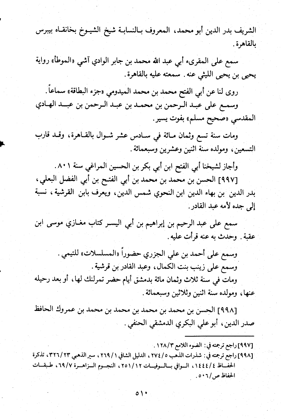 998 الحسن بن محمد بن محمد بن محمد بن محمد بن عمروك الحافظ صدر الدين أبو علي البكري الدمشقي الحنفي.