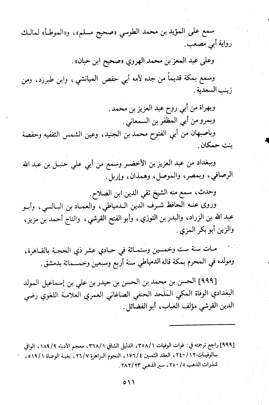 999- الحسن بن محمد بن الحسن بن حيدر بن علي بن إسماعيل المولد البغدادي الوفاة المكي الملحد الحنفي الصاغاني العمري العلامة اللغوي رضي الدين القرشي مؤلف العباب أبو الفضائل.