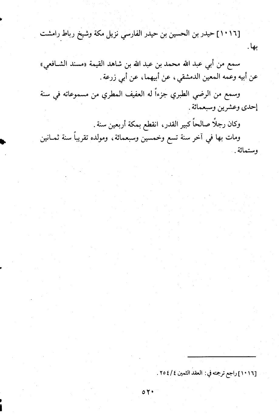 1016- حيدر بن الحسين بن حيدر الفارسي نزيل مكة وشيخ رباط رامشت بها.