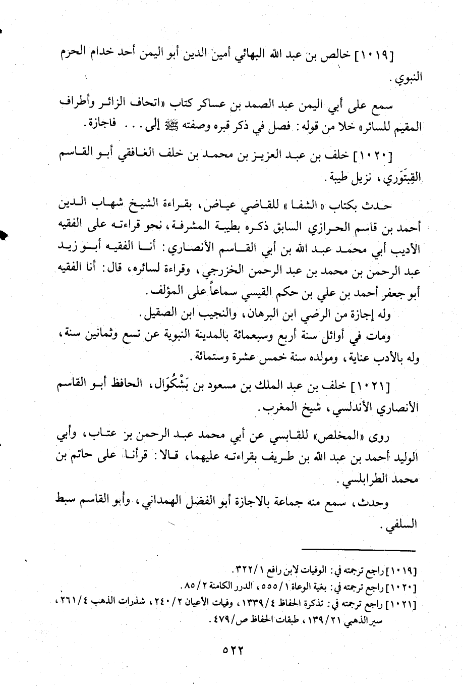 1021- خلف بن عبد الملك بن مسعود بن بشكوال الحافظ أبو القاسم الأنصاري الأندلسي شيخ المغرب.