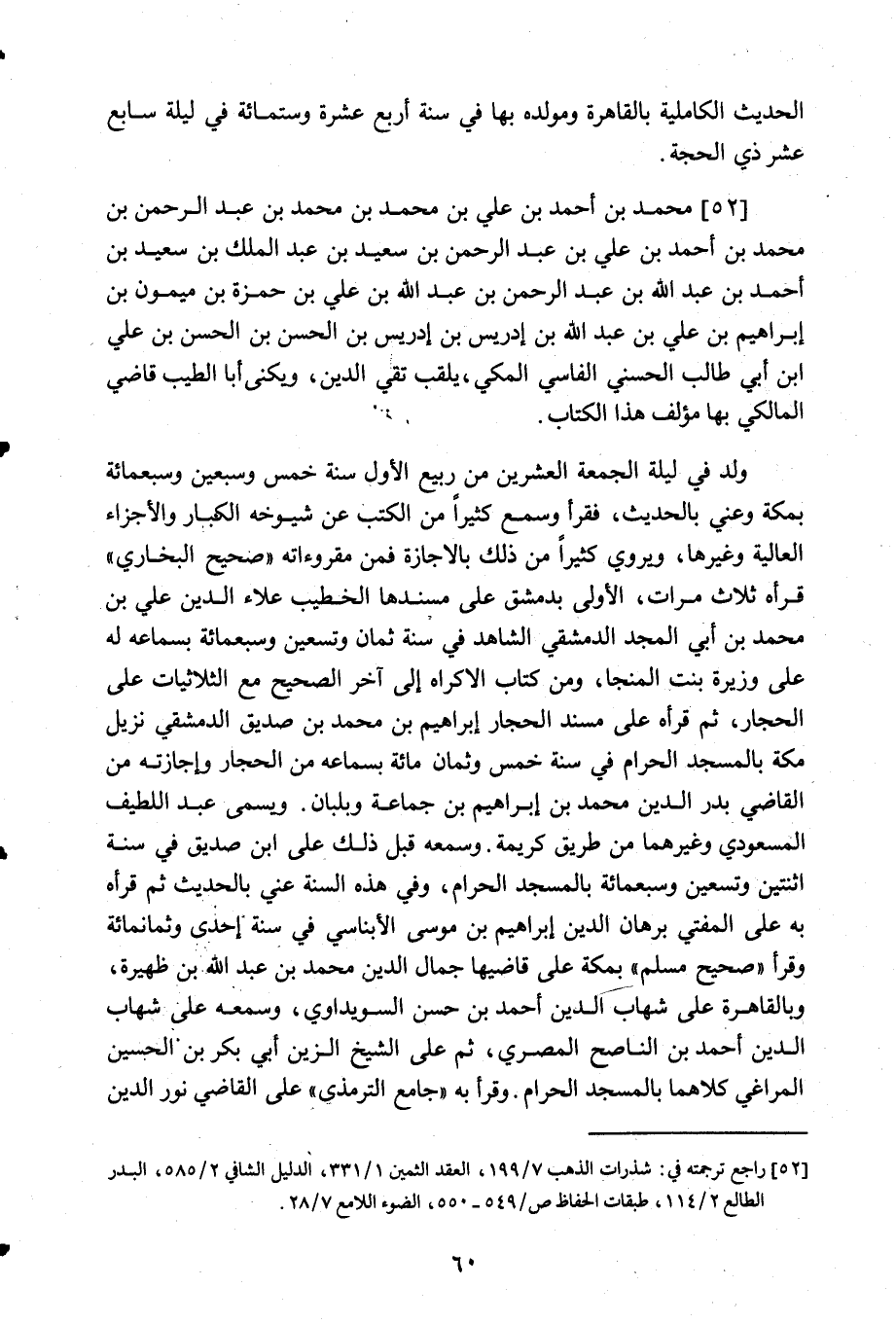 52- راجع ترجمته في: شذرات الذهب 7/199, العقد الثمين 1/331, الدليل الشافي 2/585, البدر الطالع 2/114, طبقات الحفاظ ص 549- 550, الضوء اللامع 7/28.