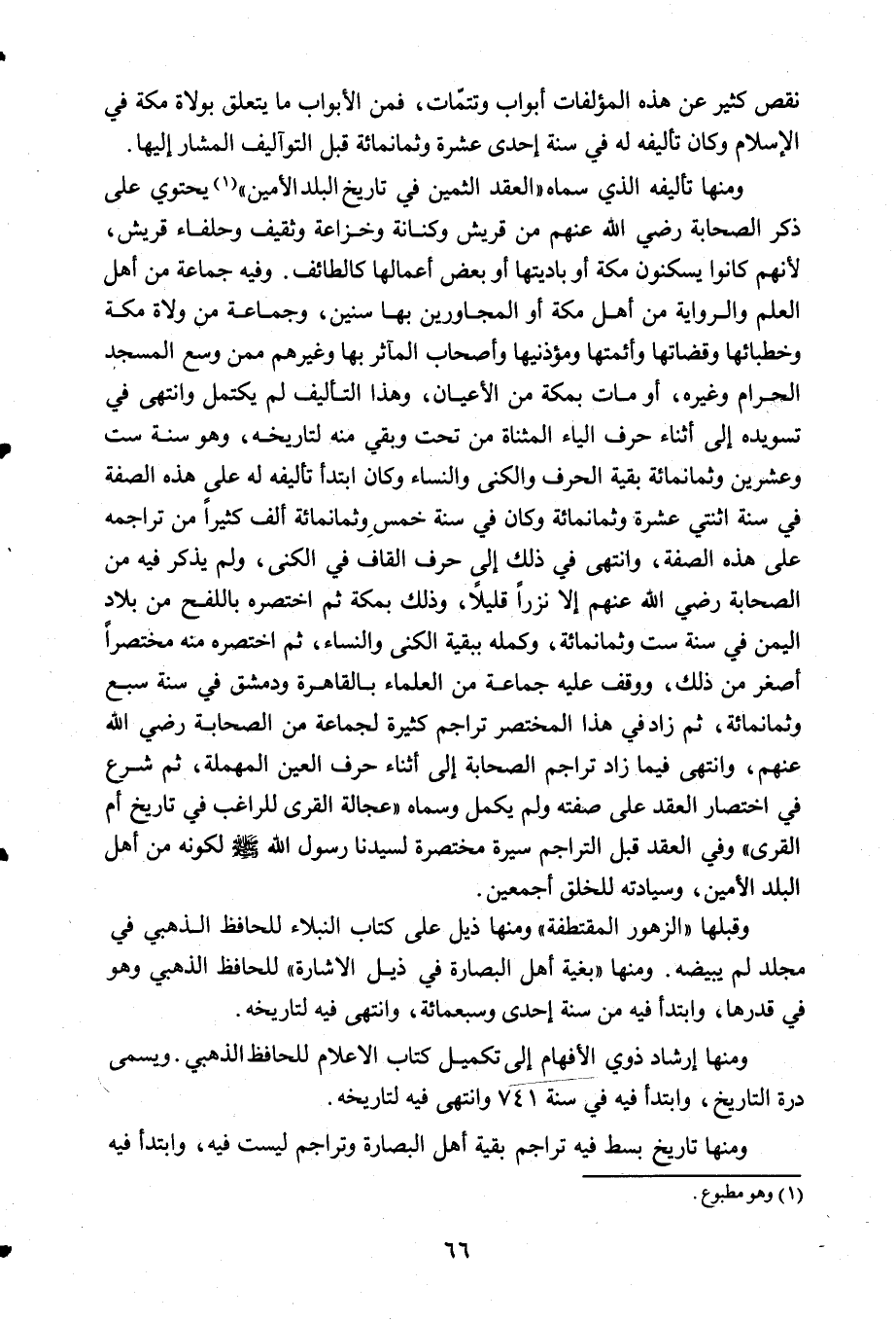نقص كثير عن هذه المؤلفات أبواب وتتمات فمن الأبواب ما يتعلق بولاة مكة في الإسلام وكان تأليفه له في سنة احدى عشرة وثمانمائة قبل التوآليف المشار اليها.