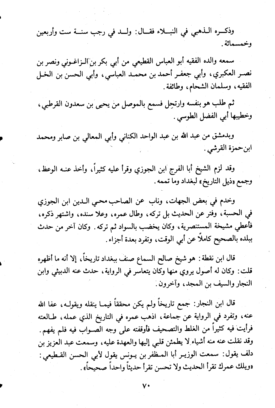 قال ابن نقطة: هو شيخ صالح السماع صنف ببغداد تاريخا الا انه ما أظهره قلت وكان له أصول يروي منها وكان يتعاسر في الرواية حدث عنه الدبيثي وابن النجار والسيف بن المجد وآخرون.